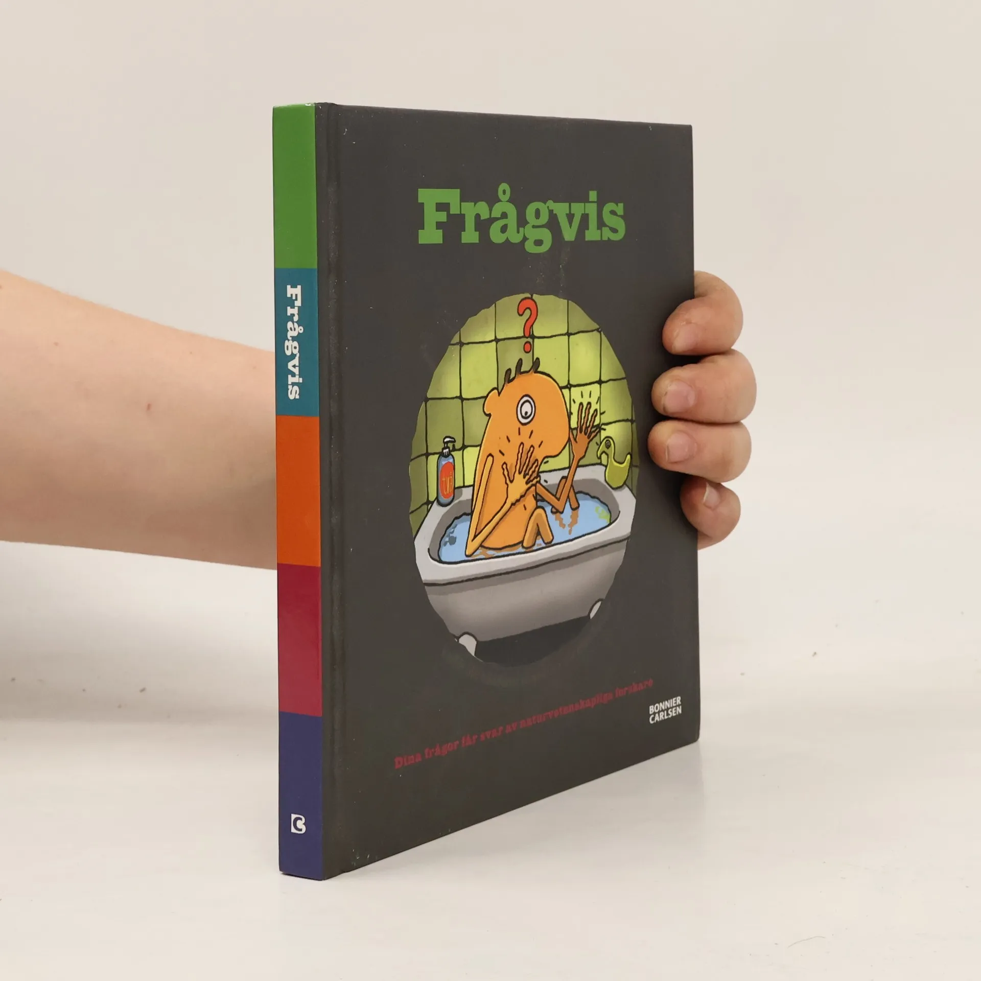 Hur långt in i jorden kan man borra? Är en elektrisk ål verkligen elektrisk? Varför reser sig hårstråna när man ryser? Varje år får forskare och experter vid Stockholms Universitet svara på frågor från sjätteklassare som rör de naturvetenskapliga ämnena. Och via den Levande frågelådans hemsida och de stora öppna frågestunderna två gånger om året har man besvarat en mängd frågor om allt mellan himmel och jord. I "Frågvis" kan du ta del av det som behandlats. Underhållande och allmänbildande läsning! Calle Marthin som är redaktör för boken är själv vetgirig författare till "Allt du behöver veta" och manusförfattare till tv- och dramaproduktioner för SVT. Nino Keller har illustrerat. Han är ofta förekommande illustratör i Kamratposten, men är också känd för sin andra karriär - som musiker. Boken är ett samarbete med Naturvetenskapliga fakulteten vid Stockholms Universitet.