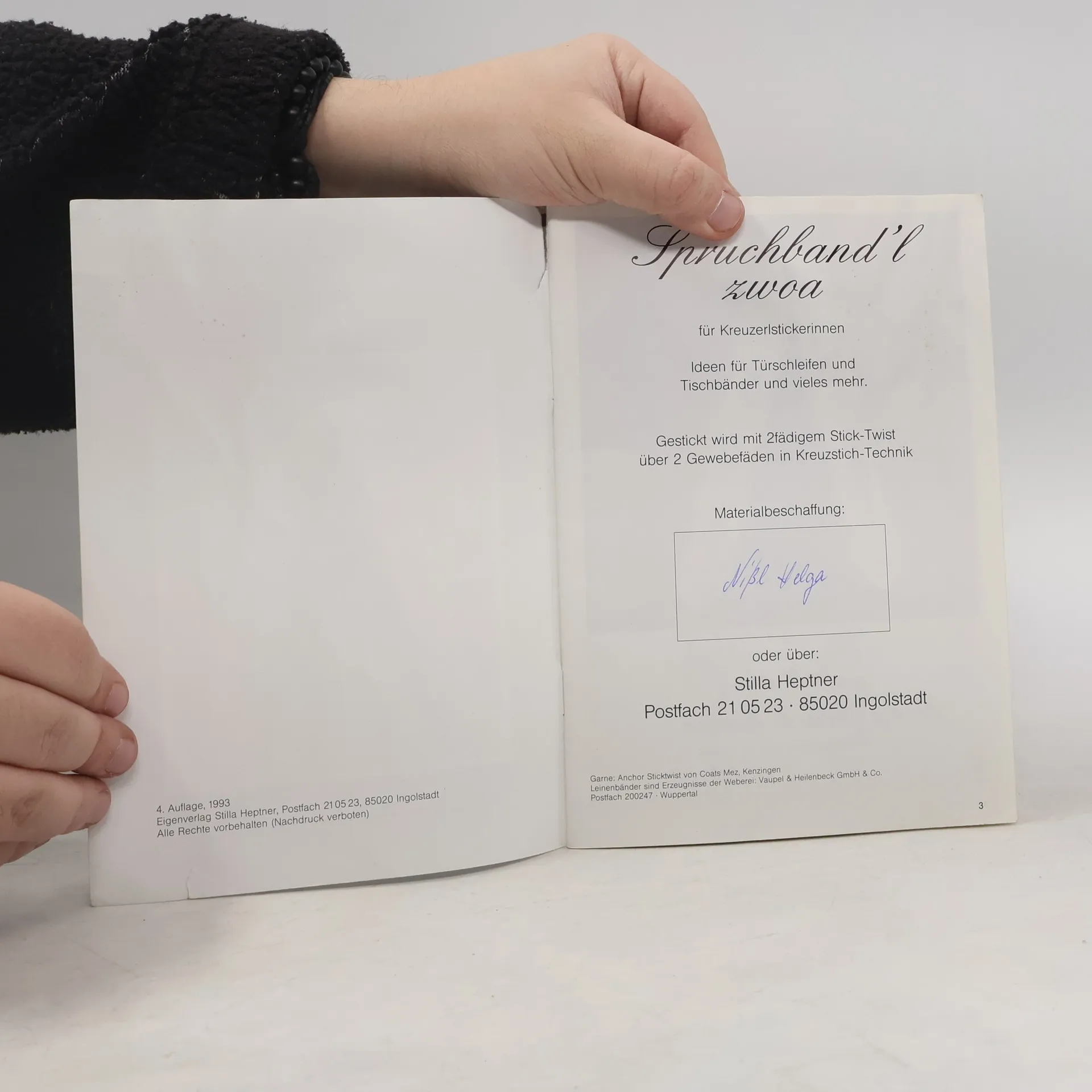 Spruchband'l zwoa für Kreuzerlstickerinnen, Stilla Heptner