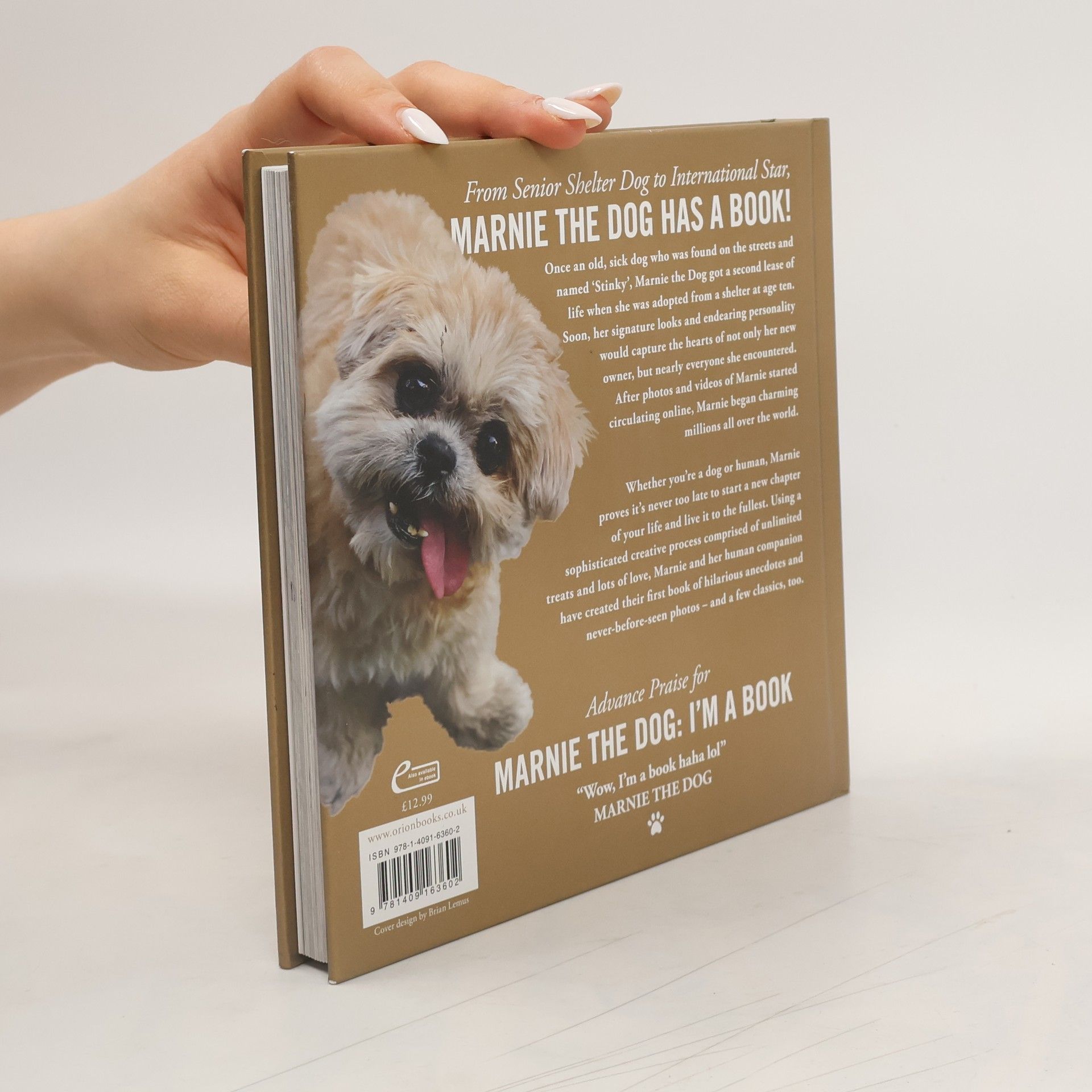 Once an old, sick dog who was found on the streets and named 'Stinky', Marnie the Dog got a second lease of life when she was adopted from a shelter at age ten. Soon, her signature looks and endearing personality would capture the hearts of not only her new owner, but nearly everyone she encountered. After photos and videos of Marnie started circulating online, Marnie began charming millions over the world. Whether you're a dog or human, Marnie proves it's never too late to start a new chapter of your life and live it to the fullest. Using a sophisticated creative process comprised of unlimited treats and lots of love, Marnie and her human companion have created their first book of never-before-seen photos, and a few classics, too. Praise for Marnie the Dog: I'm a Book: "Wow, I'm a book haha lol" - Marnie the Dog
