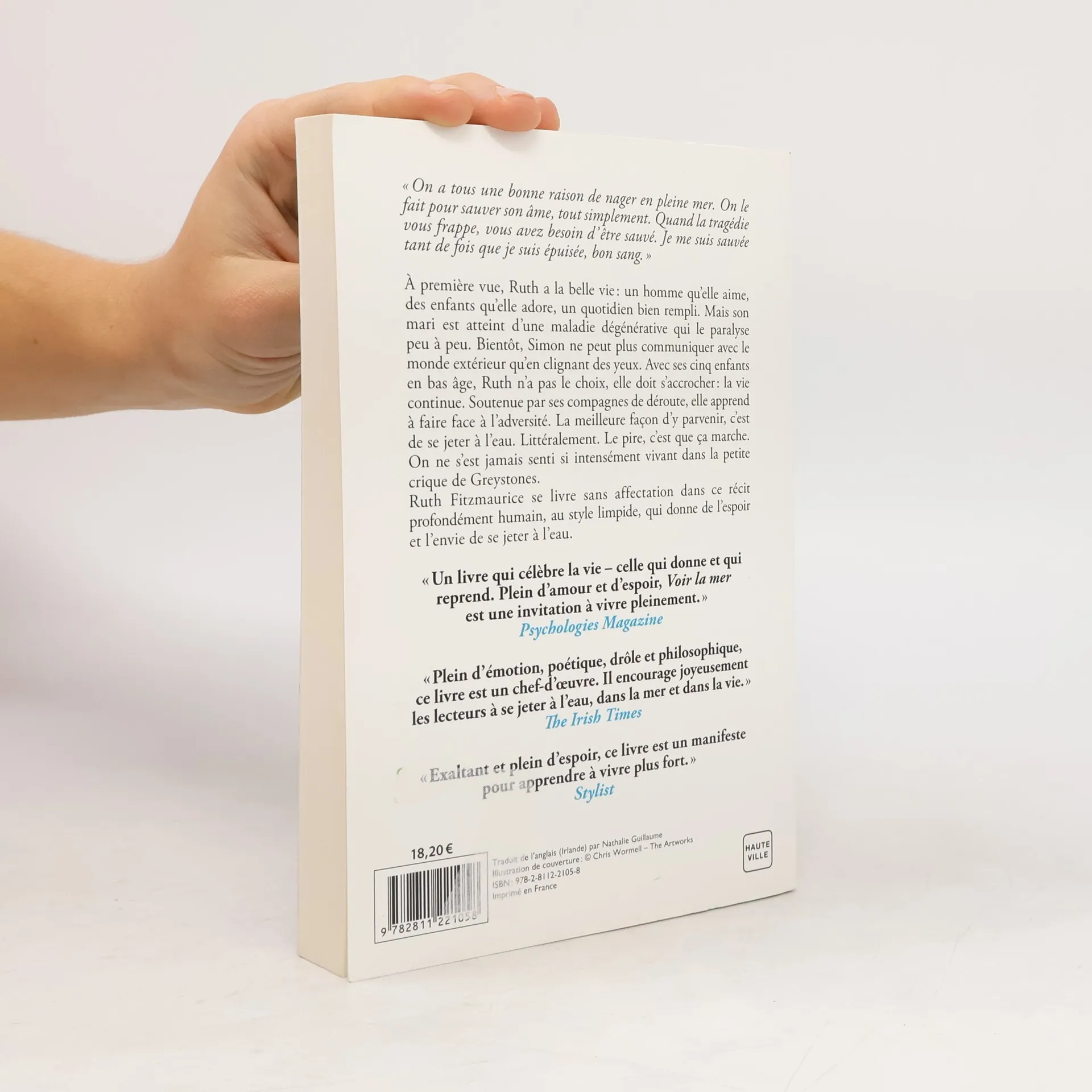 A première vue, Ruth a la belle vie : un homme qu'elle aime, des enfants qu'elle adore, un quotidien bien rempli. Mais son mari est atteint d'une maladie dégénérative qui le paralyse peu à peu. Bientôt, Simon ne peut plus communiquer avec le monde extérieur qu'en clignant des yeux. Avec ses cinq enfants en bas âge, Ruth n'a pas le choix, elle doit s'accrocher : la vie continue. Soutenue par ses compagnes de déroute, elle apprend à faire face à l'adversité. La meilleure façon d'y parvenir, c'est de se jeter à l'eau. Littéralement. Le pire, c'est que ça marche. On ne s'est jamais senti si intensément vivant dans la petite crique de Greystones. Ruth Fitzmaurice se livre sans affectation dans ce récit profondément humain, au style limpide, qui donne de l'espoir et l'envie de se jeter à l'eau.