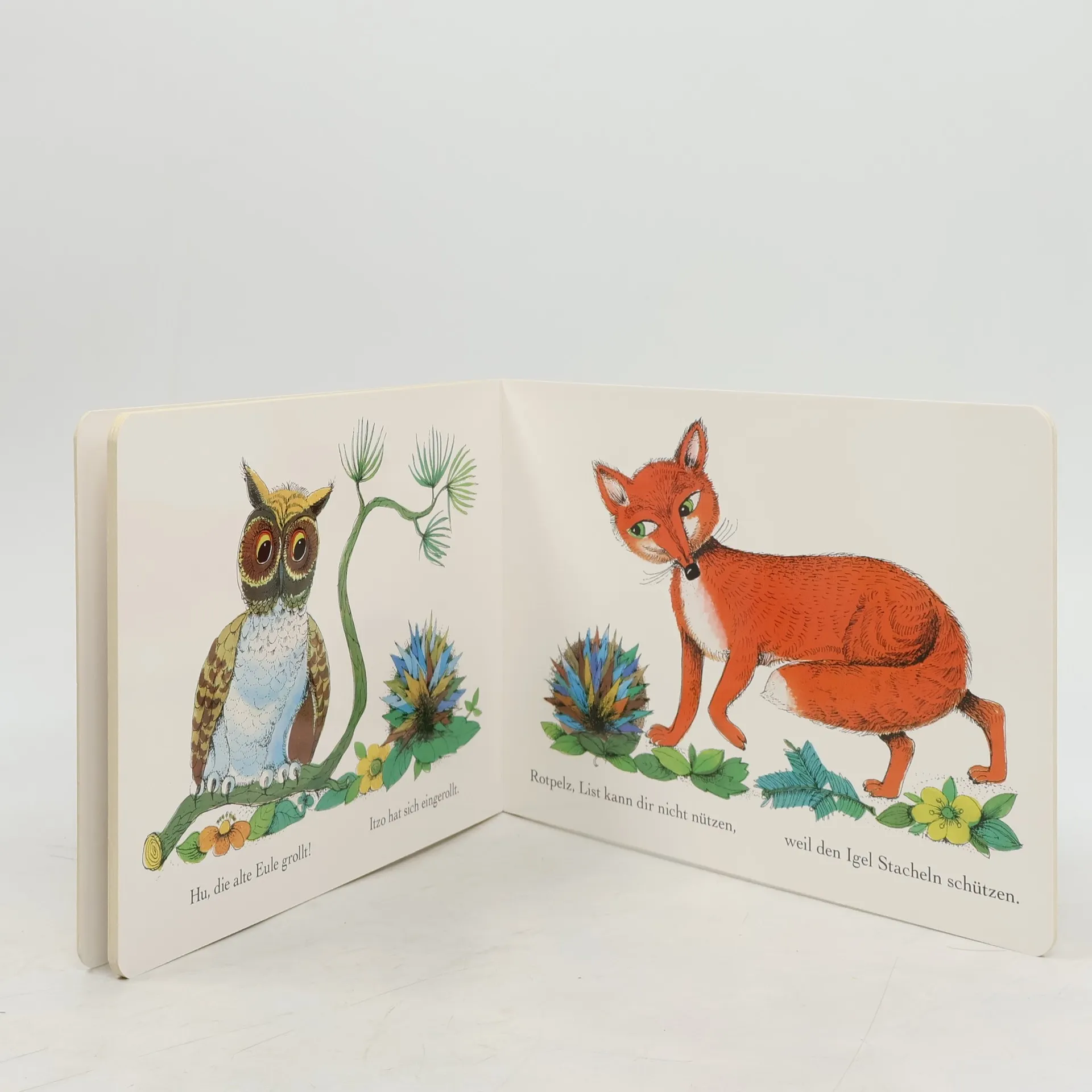 Ein Tag im Leben von Igel Itzo beschreibt seine Besuche bei verschiedenen Tieren und wie er sich zum Schutz vor dem Fuchs Rotpelz einrollt. Das Buch ist sehr niedlich und liebevoll illustriert.