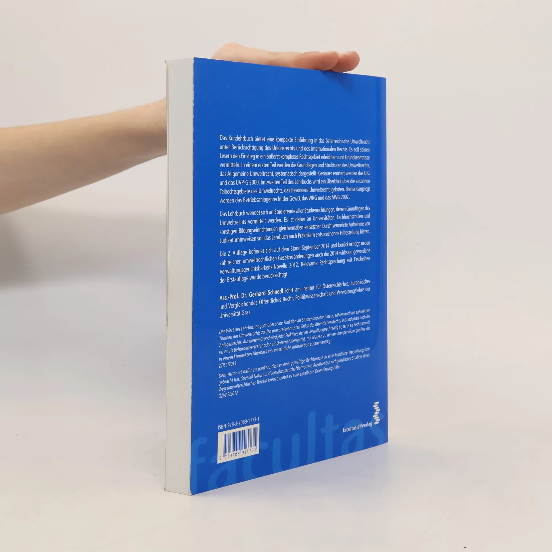 Das Kurzlehrbuch bietet eine kompakte Einführung in das österreichische Umweltrecht unter Berücksichtigung des Unionsrechts und internationalen Rechts. Es erleichtert den Einstieg in dieses komplexe Rechtsgebiet und vermittelt Grundkenntnisse. Der erste Teil behandelt die Grundlagen und Strukturen des Umweltrechts sowie das Allgemeine Umweltrecht, einschließlich des UIG und des UVP-G 2000. Im zweiten Teil wird ein Überblick über die Teilrechtsgebiete des Besonderen Umweltrechts gegeben, wobei das Betriebsanlagenrecht der GewO, das WRG und das AWG 2002 ausführlich behandelt werden. Das Lehrbuch richtet sich an Studierende aller Fachrichtungen und ist an Universitäten, Fachhochschulen und Bildungseinrichtungen einsetzbar. Durch die Aufnahme von Judikaturhinweisen bietet es auch Praktikern wertvolle Hilfestellung. Die 2. Auflage berücksichtigt den Stand von September 2014 und zahlreiche umweltrechtliche Gesetzesänderungen sowie die Verwaltungsgerichtsbarkeits-Novelle 2012. Relevante Rechtsprechung seit der Erstauflage wurde ebenfalls einbezogen. Das Lehrbuch ist nicht nur für Studierende, sondern auch für Praktiker im Verwaltungsrecht von Nutzen, da es praxisrelevante Themen des öffentlichen Rechts behandelt. Der Autor hat eine umfassende Rechtsmasse in eine handliche Form gebracht und bietet insbesondere Natur- und Sozialwissenschaftlern sowie Absolventen nichtjuristischer Studien exzellente Orientierung.