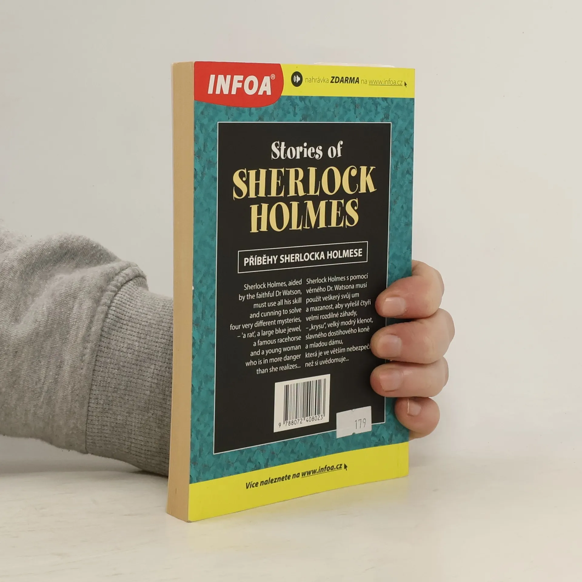 Jazyková úroveň: Mírně pokročilí. Klasické příběhy Sherlocka Holmese podle Sira Arthura Conana Doyla. Sherlock Holmes s pomocí věrného Dr. Watsona musí použít veškerý svůj um a mazanost, aby vyřešil čtyři velmi rozdílné záhady, – krysu, velký modrý klenot, slavného dostihového koně a mladou dámu, která je ve větším nebezpečí, než si uvědomuje... Nahrávky ZDARMA na infoa.cz.
