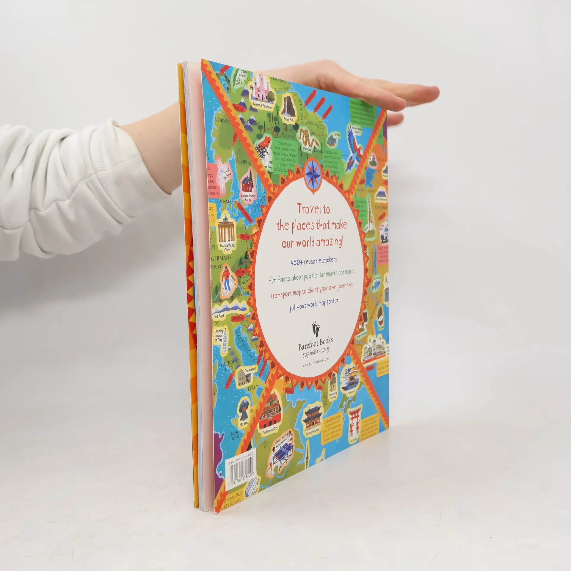 The 400+ reusable stickers in this over sized, 32-page collection guide children on a fact-packed journey around the world, teaching them about each region's people, plants, animals and landmarks. This engaging companion to the celebrated Barefoot Books World Atlas includes a labeled, pull-out world map poster by award-winning artist David Dean.