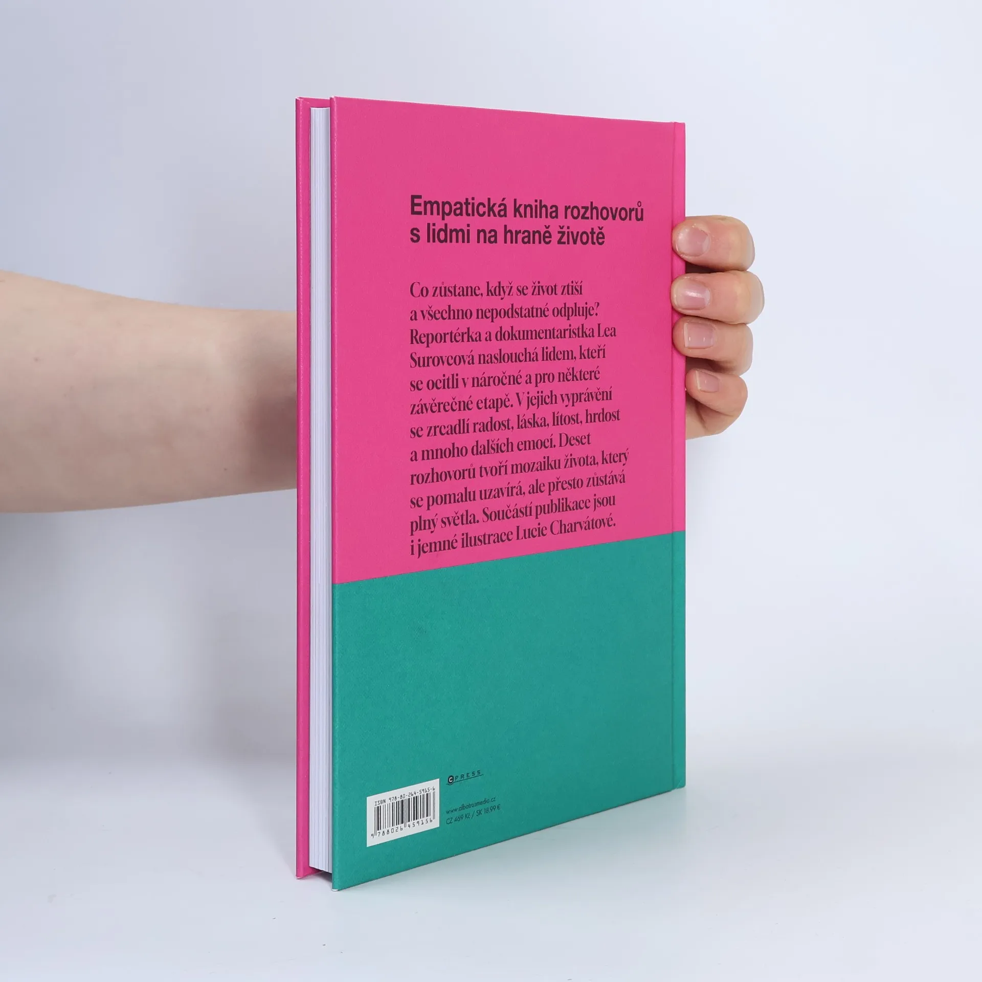 Empatická kniha rozhovorů s lidmi na hraně životě. Co zůstane, když se život ztiší a všechno nepodstatné odpluje? Reportérka a dokumentaristka Lea Surovcová naslouchá lidem, kteří se ocitli v náročné a pro některé závěrečné etapě. V jejich vyprávění se zrcadlí radost, láska, lítost, hrdost a mnoho dalších emocí. Deset rozhovorů tvoří mozaiku života, který se pomalu uzavírá, ale přesto zůstává plný světla. Součástí publikace jsou i jemné ilustrace Lucie Charvátové.