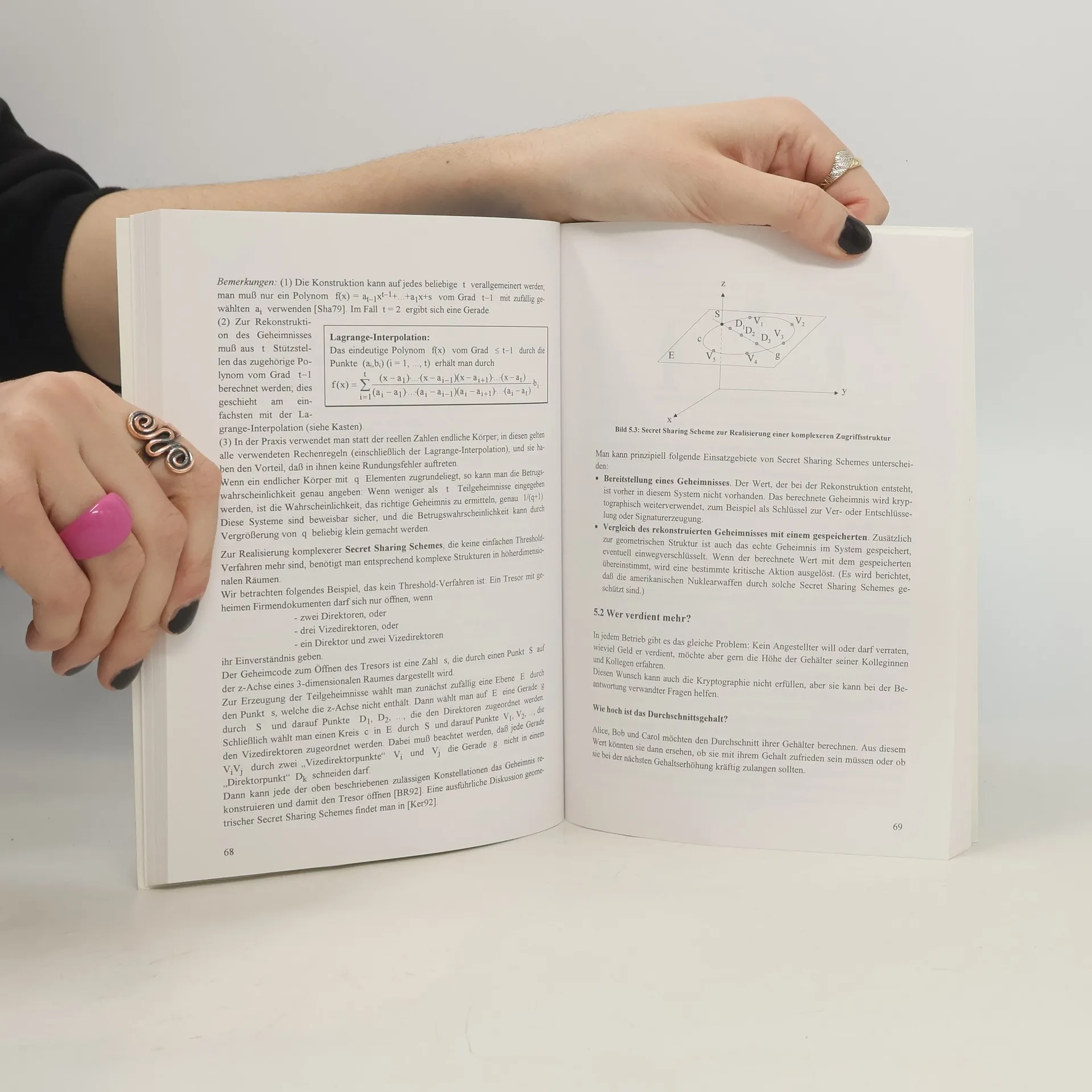1 Ziele der Kryptographie: Geheimhaltung, Authentikation, Anonymität, Protokolle. 2 Kryptologische Grundlagen: Verschlüsselung, asymmetrische Verschlüsselung, Einwegfunktionen, kryptographische Hashfunktionen, Trapdoor-Einwegfunktionen, Commitment, Bit-Commitment, elektronische Signatur, RSA-Algorithmus. 3 Grundlegende Protokolle: Paßwortverfahren (Festcodes), Wechselcodeverfahren, Challenge-and-Response, Diffie-Hellman-Schlüsselvereinbarung, ElGamal-Verschlüsselungsverfahren, ElGamal-Signaturverfahren, Shamirs No-Key-Protokoll, Knobeln übers Telefon, blinde Signaturen. 4 Zero-Knowledge-Verfahren: Interaktive Beweise, Zero-Knowledge-Verfahren, NP-Probleme mit Zero-Knowledge-Beweisen, Verhöre von Verdächtigen, Witness Hiding, nichtinteraktive Zero-Knowledge-Beweise. 5 Multiparty Computations: Secret Sharing Schemes, Wer verdient mehr?, Skatspielen übers Telefon, Secure Circuit Evaluation, Schutz vor allwissenden Orakeln. 6 Anonymität: Dining-Cryptographers-Protokoll, MIXe, elektronische Münzen, elektronische Wahlen. 7 Vermischtes: Schlüsselmanagement durch Trusted Third Parties, Angriffe auf Protokolle, Oblivious Transfer, Quantenkryptographie. 8 Mathematische Grundlagen: Natürliche Zahlen, modulare Arithmetik, quadratische Reste, diskreter Logarithmus, Isomorphe von Graphen, Zufall in der Kryptographie, Komplexitätstheorie, große Zahlen. Stichwortverzeichnis.