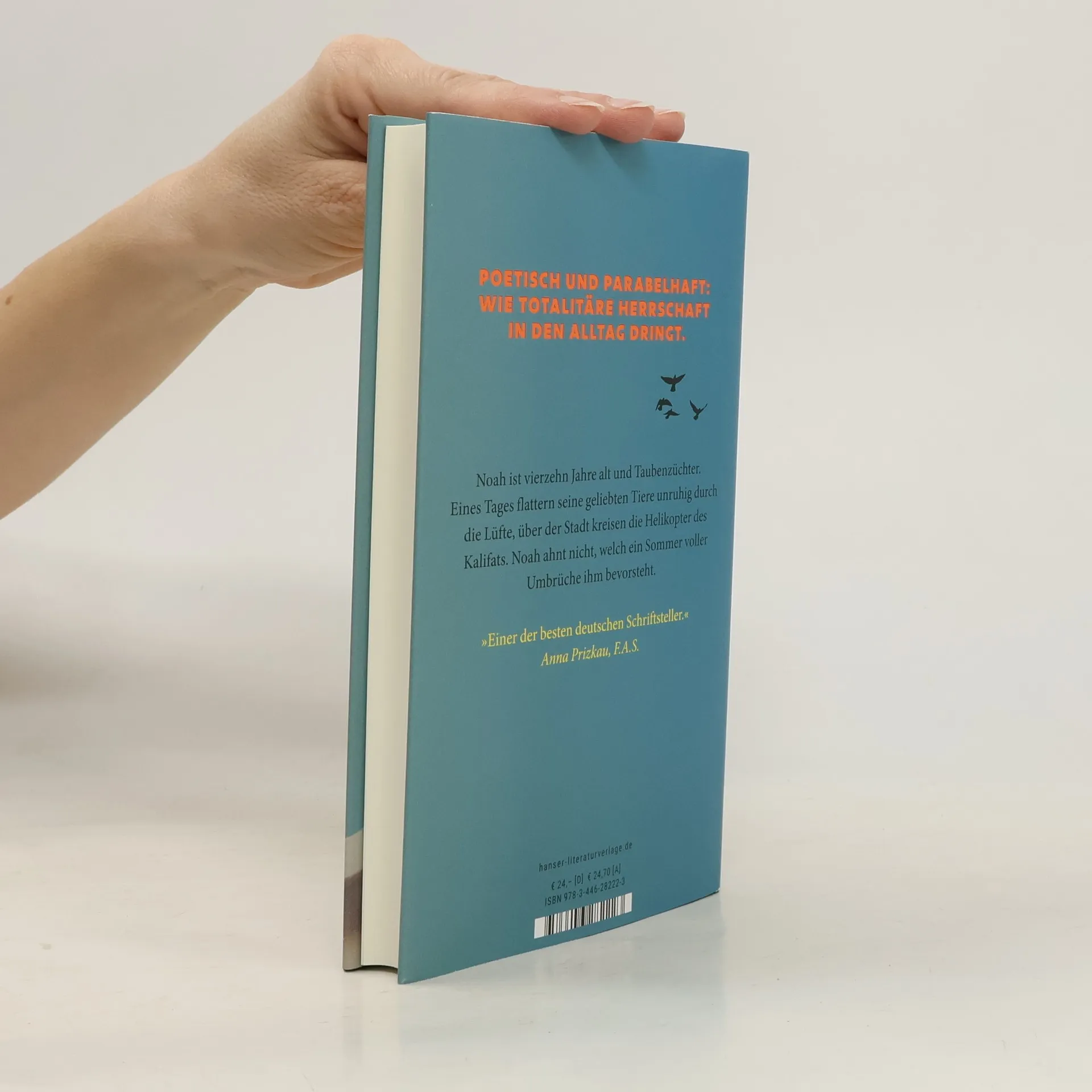 Ich liebe Romane, die reale Ereignisse literarisch aufarbeiten, und genau das gelingt hier auf eindrucksvolle, nie überfordernde Weise. Die Einblicke in die politischen Geschehnisse im Kalifat sind beklemmend, stehen jedoch nicht im Vordergrund. Mit poetischer Leichtigkeit erschafft der Autor eine parallele Geschichte, in der sich der 14-jährige Noah um seine Tauben sorgt. Und eigentlich wird damit so viel mehr erzählt, als man für möglich hält. „Die Tauben sind mir wie immer ein Trost. Ohne sie, denke ich, wäre ich verloren. Sie sind das einzige Beständige in einer Welt, die sich um mich herum gerade so rasant wandelt.“ Poetisch, bildreich, seicht und zugleich spannend rückt der Roman das Innenleben seines Protagonisten in den Mittelpunkt und schenkt einer düsteren Zeit unerwartete Leichtigkeit. Ich kann das Buch uneingeschränkt empfehlen.