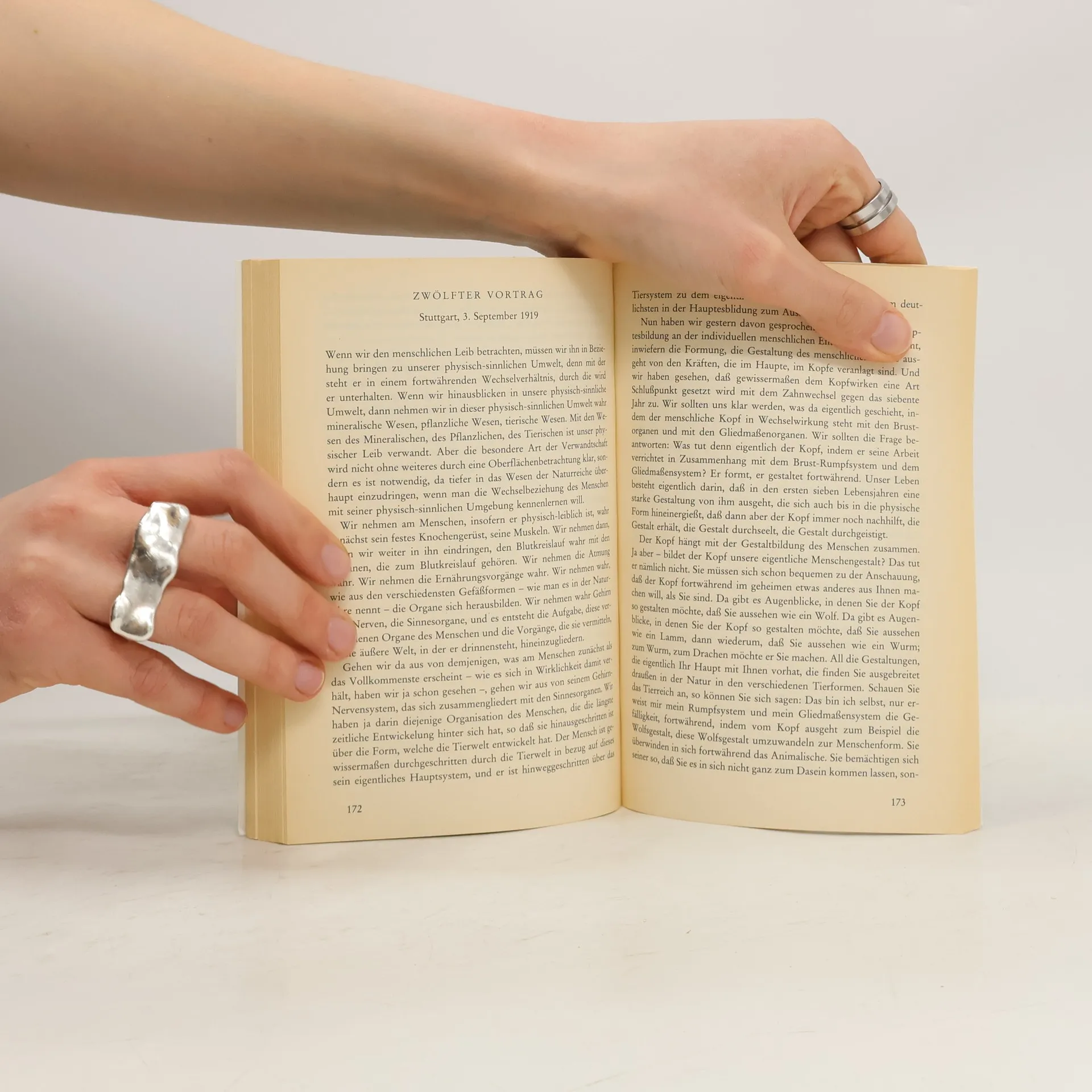 Inhalt (Auswahl): Waldorfschule, eine Kulturtat / Die republikanische Verwaltung der Schule / Über das Problem der 'vorgeburtlichen Erziehung' / Vorstellung und Wille, Blut und Nerv / Die Ausprägung des Willens in den einzelnen Wesensgliedern / Das Leben des Ich in den Seelentätigkeiten / Die Gliederung der zwölf Sinne / Zugrundeliegen der Kugelform in den drei Leibesgliedern / Die Atmung als Anti-Pflanzenprozess / Die leibliche Dreigliederung