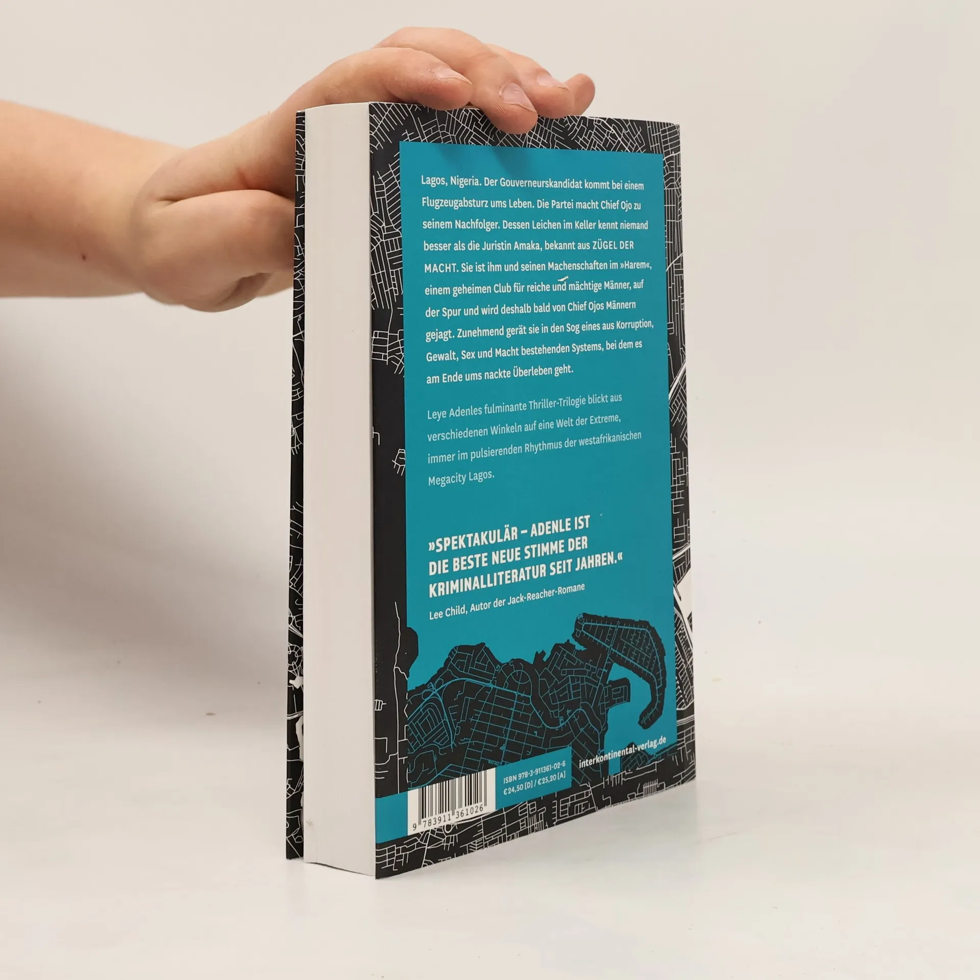 Leye Adenles fulminante Thriller-Trilogie blickt aus verschiedenen Winkeln auf eine Welt der Extreme, immer im pulsierenden Rythmus der westafrikanischen Megacity Lagos. In Spur des Geldes kehrt Amaka zurück und wird in einen politischen Skandal verwickelt: Der Gouverneurskandidat kommt bei einem Flugzeugabsturz ums Leben. Nun macht die Partei Chief Ojo zu seinem Nachfolger. Dessen Leichen im Keller kennt niemand besser als Amaka und so gerät sie zunehmend in den Sog eines aus Korruption, Gewalt, Sex und Macht bestehenden Systems, bei dem es am Ende ums nackte Überleben geht.