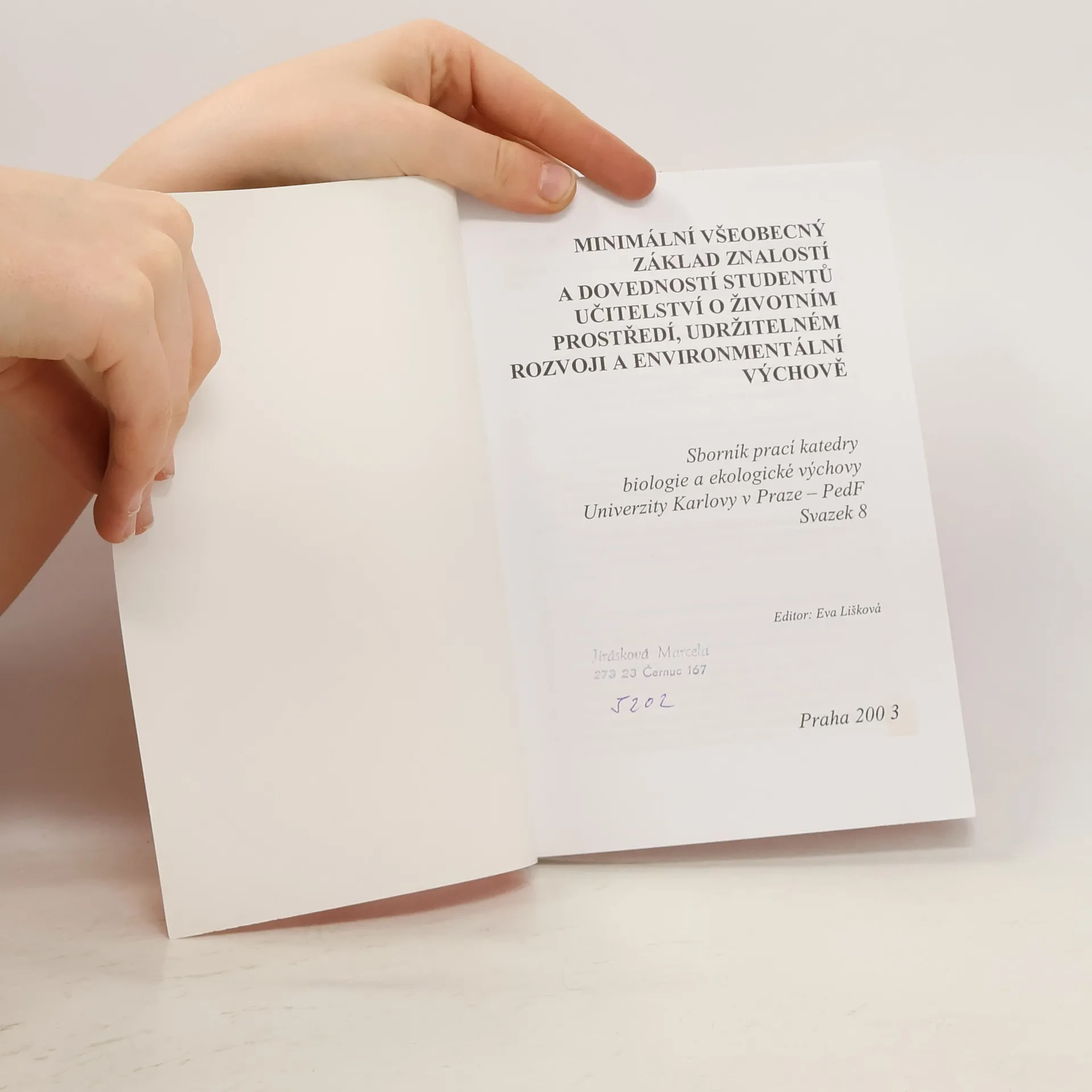 Minimální všeobecný základ znalostí a dovedností studentů učitelství o životním prostředí, udržitelném rozvoji a environmentální výchově, Eva Lišková