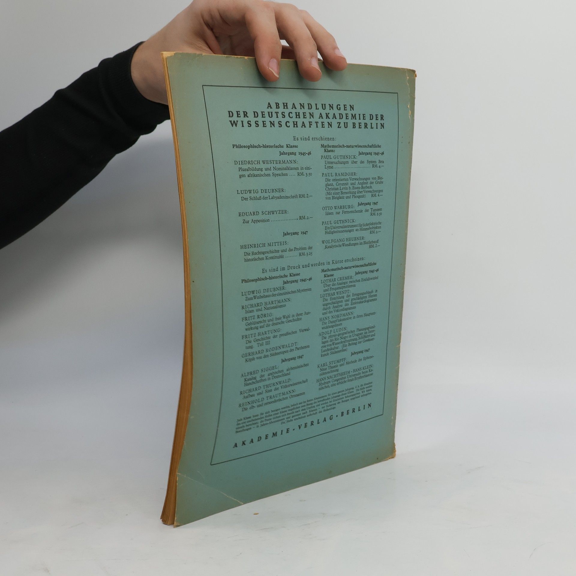 Abhandlungen der Deutschen Akademie der Wissenschaften zu Berlin, Hans Nordmann