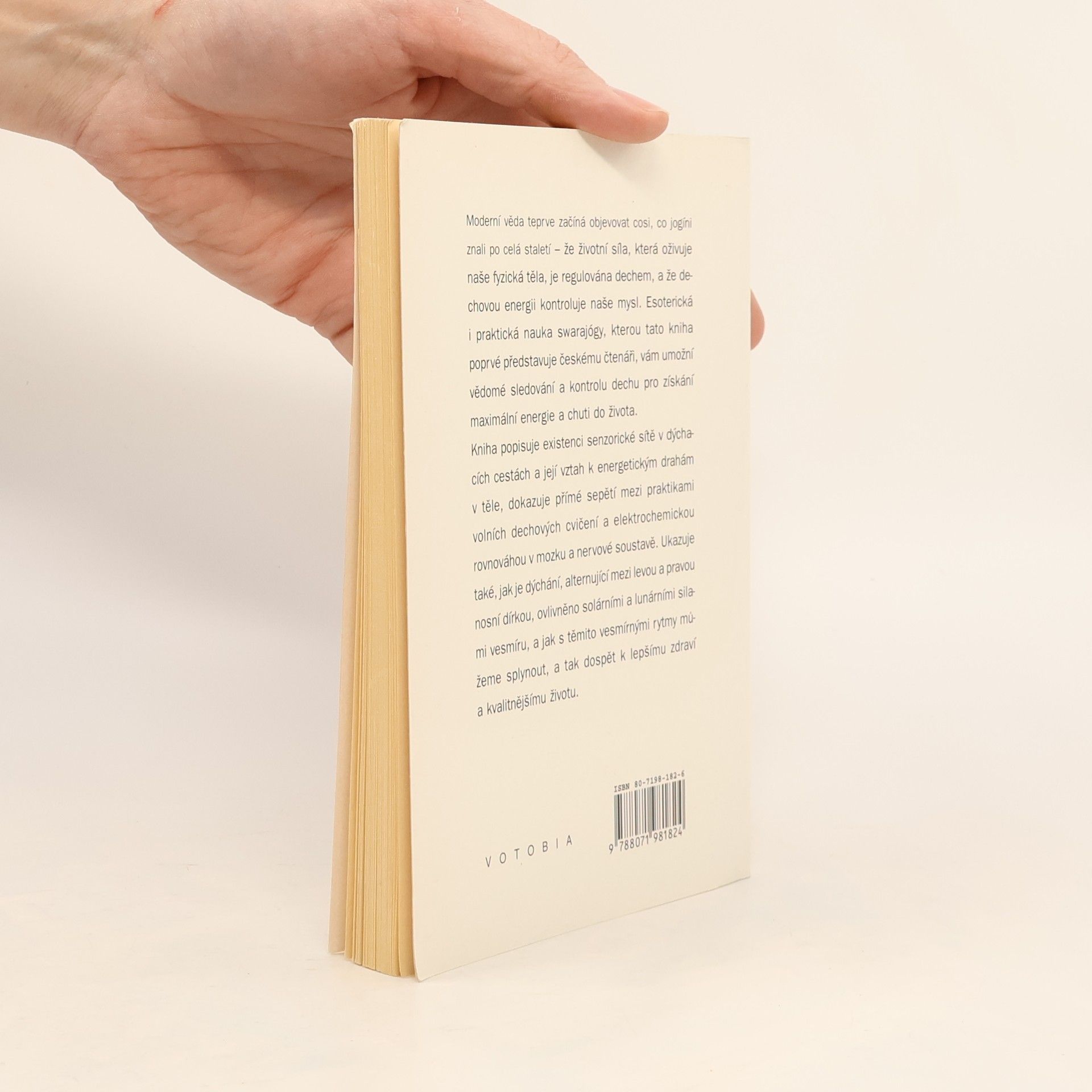 Esoterická i praktická nauka swarajógy vám umožní vědomé sledování a kontrolu dechu pro získání maximální energie a chuti do života. Kniha popisuje existenci senzorické sítě v dýchacích cestách a její vztah k energetickým drahám v těle, dokazuje přímé sepětí mezi praktikami volných dechových cvičení a elektrochemickou rovnováhou v mozku a nervové soustavě. Ukazuje také, jak je dýchání, aleternující mezi levou a pravou nosní dírkou, ovlivněno solárními a lunárními silami vesmíru, a jak s těmito vesmírnými rytmy můžeme splynout, a tak dospět k lepšímu zdraví a kvalitnějšímu životu.