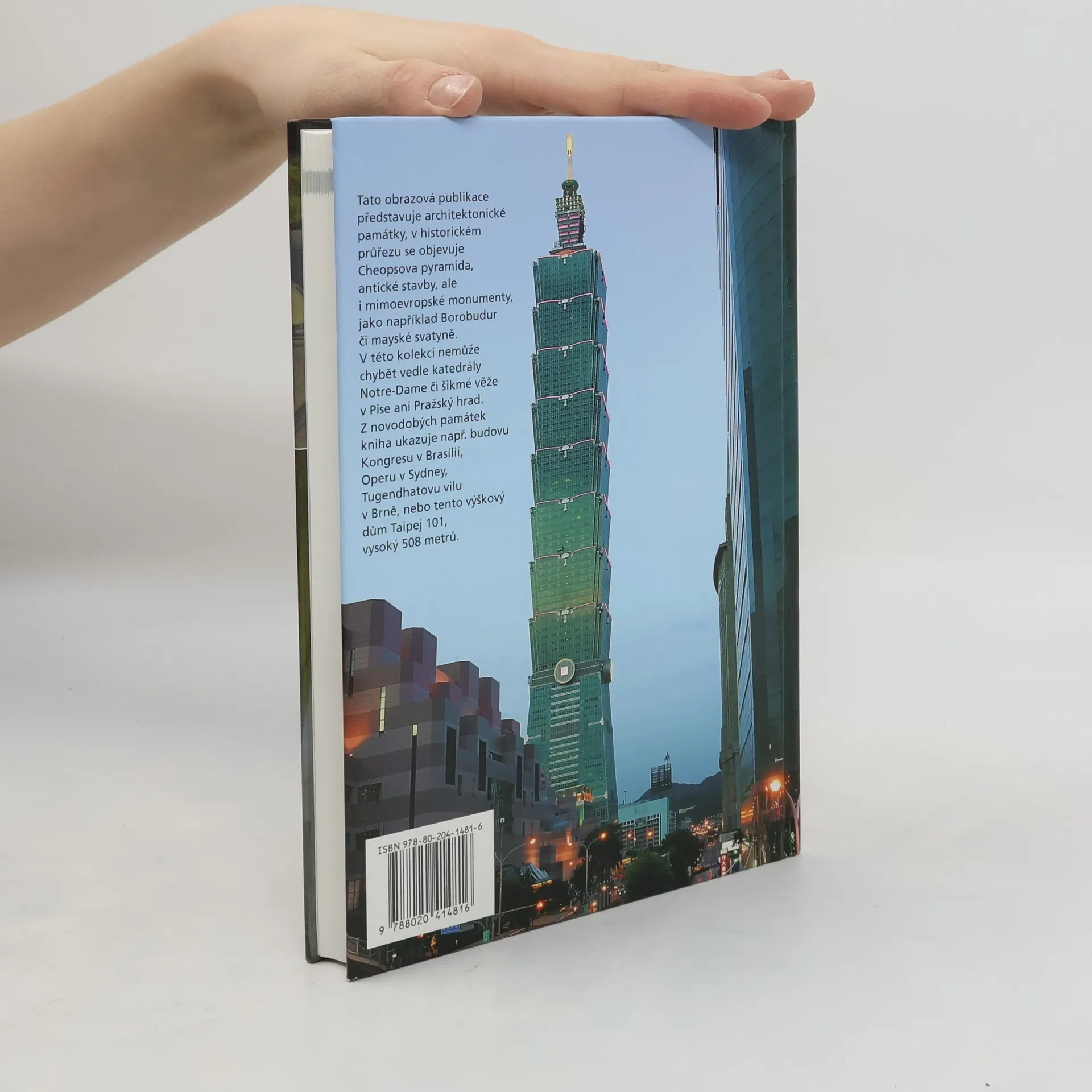 Tato obrazová publikace představuje architektonické památky, v historickém průřezu se objevuje Cheopsova pyramida, antické stavby, ale i mimoevropské monumenty, jako například Borobudur či mayské svatyně. V této kolekci nemůže chybět vedle katedrály Notre-Dame či šikmé věže v Pise ani Pražský hrad. Z novodobých památek kniha ukazuje např. budovu Kongresu v Brasílii, Operu v Sydney, Tugendhatovu vilu v Brně, nebo výškový dům Taipej 101, vysoký 508 metrů.