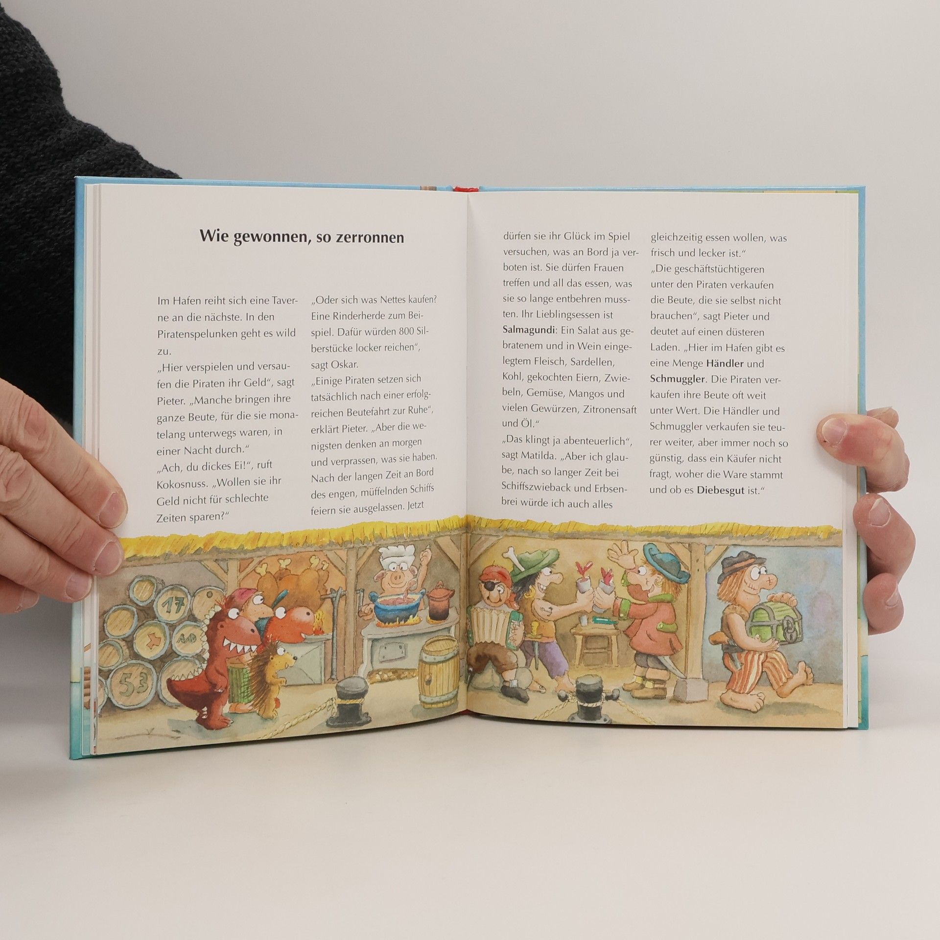 Feuerdrache Kokosnuss: Unterwegs auf allen Meeren! In welchem Jahrhundert fuhren Piratenschiffe über die Weltmeere? Warum wurde man Seeräuber? Was wollten die Piraten auf ihren Kaperfahrten erbeuten? Wie verteilte man die Schätze? Der kleine Drache Kokosnuss, Oskar und Matilda besuchen wieder einmal den Schlimmen Jim und Pieter Backbord, um mehr über das aufregende Piratenleben zu erfahren. Und natürlich schreiben sie alle wissenswerten Dinge auf, um sie an ihre Fans weiterzugeben ... Ausstattung: Mit fbg. Illustrationen