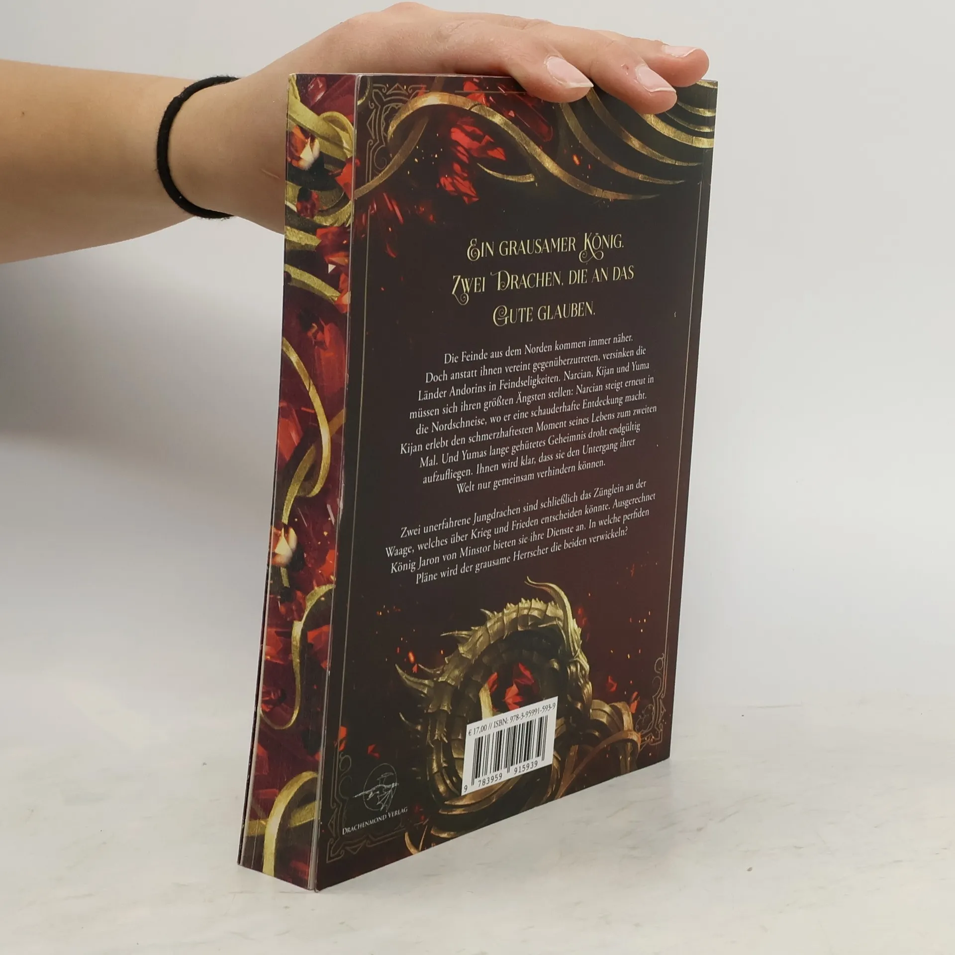 Ein grausamer König. Zwei Drachen, die an das Gute glauben. Die Feinde aus dem Norden kommen immer näher. Doch anstatt ihnen vereint gegenüberzutreten, versinken die Länder Andorins in Feindseligkeiten. Narcian, Kijan und Yuma müssen sich ihren größten Ängsten stellen: Narcian steigt erneut in die Nordschneise, wo er eine schauderhafte Entdeckung macht. Kijan erlebt den schmerzhaftesten Moment seines Lebens zum zweiten Mal. Und Yumas lange gehütetes Geheimnis droht endgültig aufzufliegen. Ihnen wird klar, dass sie den Untergang ihrer Welt nur gemeinsam verhindern können. Zwei unerfahrene Jungdrachen sind schließlich das Zünglein an der Waage, welches über Krieg und Frieden entscheiden könnte. Ausgerechnet König Jaron von Minstor bieten sie ihre Dienste an. In welche perfiden Pläne wird der grausame Herrscher die beiden verwickeln? Reihe Band 1 - Gottesflüstern Band 2 - Blütenwispern Band 3 - Drachenraunen