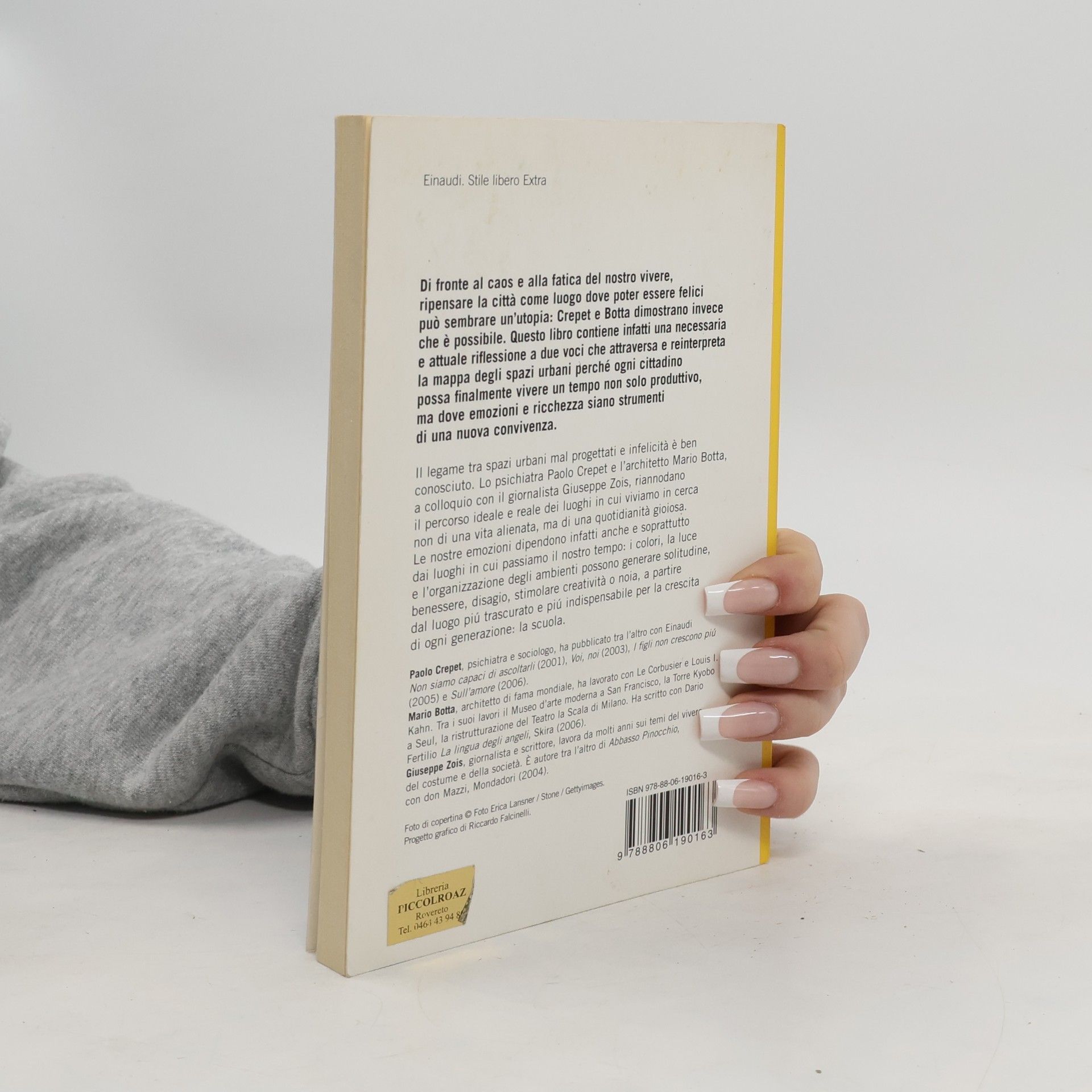 Di fronte al caos e alla fatica del nostro vivere, ripensare la città come luogo dove poter essere felici può sembrare un'utopia: Crepet e Botta dimostrano invece che è possibile. Questo libro contiene infatti una necessaria e attuale riflessione a due voci che attraversa e reinterpreta la mappa degli spazi urbani perché ogni cittadino possa finalmente vivere un tempo non solo produttivo, ma dove emozioni e ricchezza siano strumenti di una nuova convivenza.Il legame tra spazi urbani mal progettati e infelicità è ben conosciuto. Lo psichiatra Paolo Crepet e l'architetto Mario Botta, a colloquio con il giornalista Giuseppe Zois, riannodano il percorso ideale e reale dei luoghi in cui viviamo in cerca non di una vita alienata, ma di una quotidianità gioiosa. Le nostre emozioni dipendono infatti anche e soprattutto dai luoghi in cui passiamo il nostro tempo: i colori, la luce e l'organizzazione degli ambienti possono generare solitudine, benessere, disagio, stimolare creatività o noia, a partire dal luogo piú trascurato e piú indispensabile per la crescita di ogni generazione: la scuola.