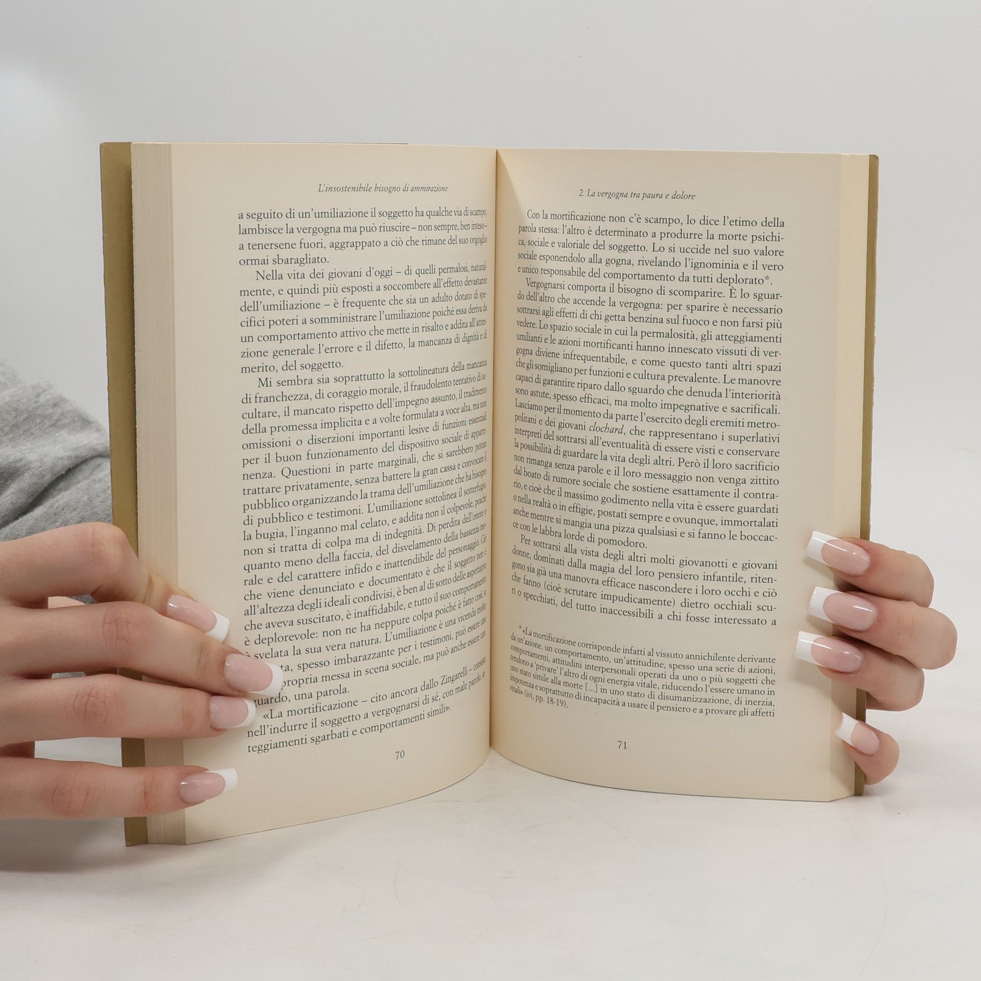 Siamo narcisi che palpitano al ritmo di like, desiderando visibilità e ammirazione. È finito il tempo in cui i sensi di colpa influenzavano i comportamenti; ora, adulti e adolescenti sono guidati dal bisogno di notorietà e dalla paura di finire nell'ombra sociale. Questa situazione è una conseguenza dell'individualismo e dell'enfasi sul Sé, spesso tradotta nell'esibizione di doti inesistenti. A guidare il gioco è un Sé fragile, terrorizzato di non essere all'altezza delle aspettative, che cade facilmente nella paura della vergogna, causa comune di sofferenza mentale. In pochi anni, il Patriarcato e il suo rappresentante, il Padre, sono scomparsi, lasciando il posto al Sé, che ora determina il giusto e l'ingiusto. L'individuo, insensibile a regole e leggi, cerca di realizzarsi e ottenere ricchezza, benessere e potere sociale con facilità. Oggi, il desiderio più profondo dei giovani e, sempre più, degli adulti è suscitare ammirazione; l'assenza di essa porta alla vergogna, rendendo intollerabile l'idea di essere considerati insignificanti. La caduta dell'etica condivisa ha portato a un'enfasi sull'estetica e sul potere della seduzione, rendendo la paura di non essere desiderabili una causa diffusa di malessere. L'analisi di questo crescente malessere è firmata da uno dei più noti psicoanalisti italiani.