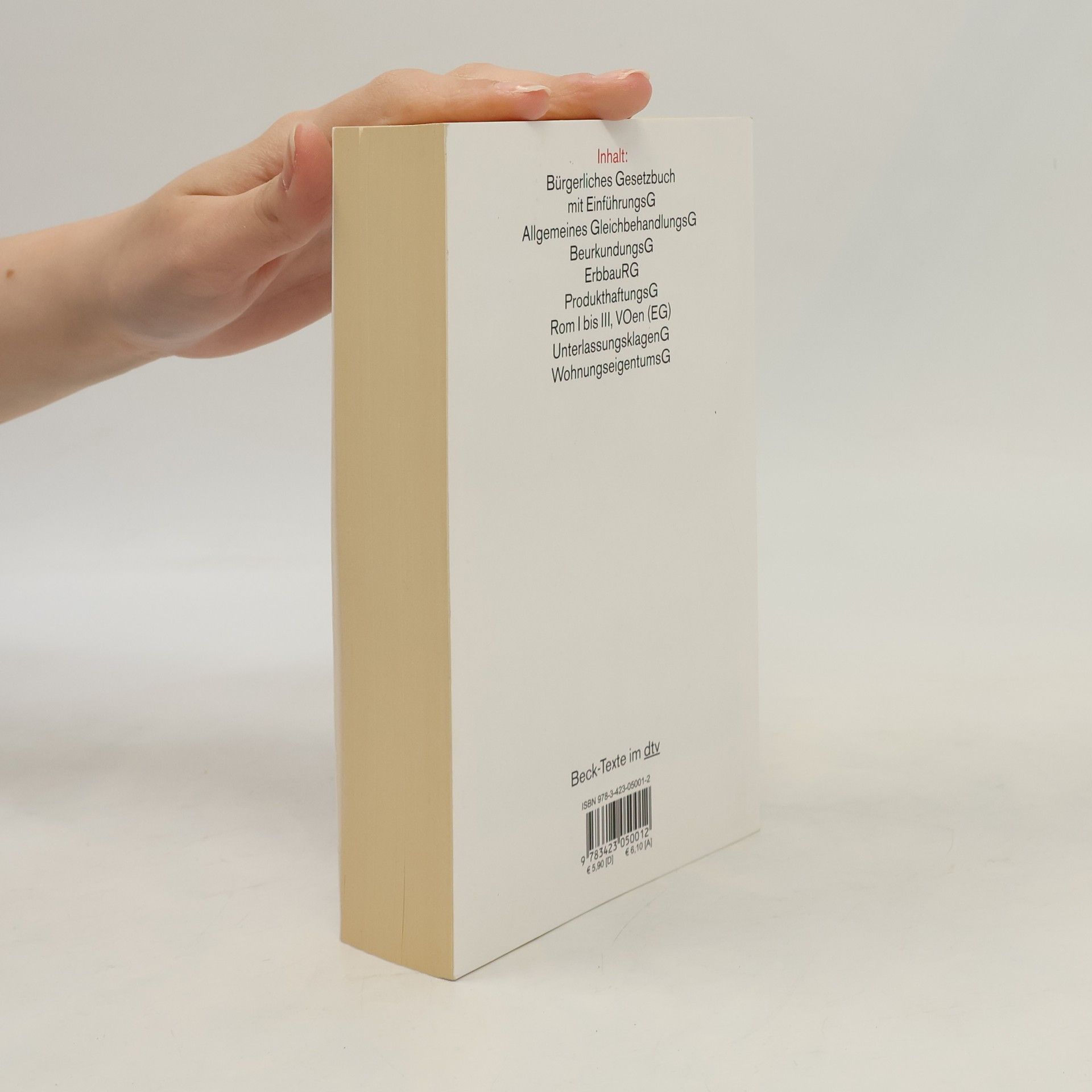 Bürgerliches Gesetzbuch mit EinführungsG, Allgemeines GleichbehandlungsG, BeurkundungsG, BGB-Informationspflichten-VO, ErbbaurechtsG, LebenspartnerschaftsG, ProdukthaftungsG, Rom I und II, VOen (EG), UnterlassungsklagenG, WohnungseigentumsG. Die Neuauflage enthält insbesondere textliche Bereinigungen und den neuen ab 1.1.2012 geltenden Basiszinssatz.