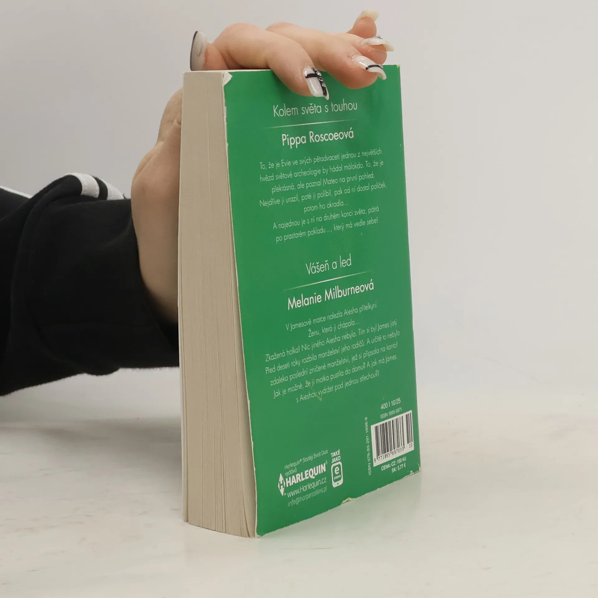 Kolem světa s touhou To, že je Evie, ve svých pětadvaceti jednou z největších hvězd světové archeologie, by hádal málokdo. To, že je překrásná, ale poznal Mateo na první pohled. Nejdříve ji urazil, poté ji políbil, pak od ní dostal políček, potom ho okradla… A najednou je s ní na druhém konci světa, pátrá po prastarém pokladu…, který má vedle sebe! Vášeň a led V Jamesově matce nalezla Aiesha přítelkyni. Ženu, která ji chápala… Zkažená holka! Nic jiného Aiesha nebyla. Tím si byl James jistý. Před deseti roky rozbila manželství jeho rodičů. A určitě to nebylo zdaleka poslední zničené manželství, jež si připsala na konto! Jak je možné, že ji matka pustila do domu? A jak má James s Aieshou vydržet pod jednou střechou?!
