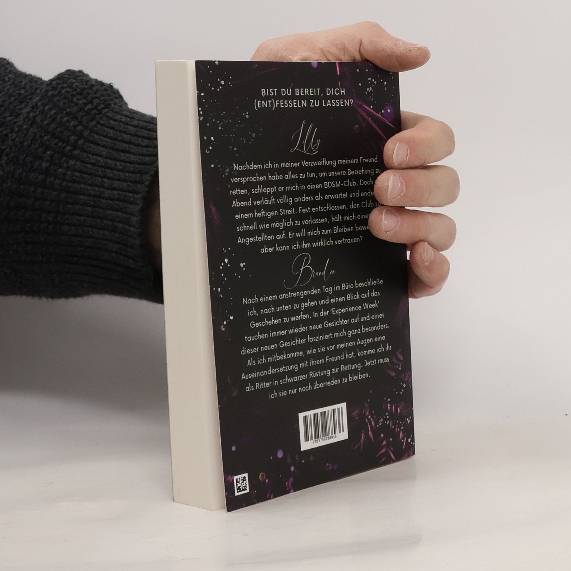 Bist du bereit, dich (ent)fesseln zu lassen? Lilly Nachdem ich in meiner Verzweiflung meinem Freund versprochen habe, alles zu tun, um unsere Beziehung zu retten, schleppt er mich in einen BDSM-Club. Doch der Abend verläuft völlig anders als erwartet und endet in einem heftigen Streit. Fest entschlossen, den Club so schnell wie möglich zu verlassen, hält mich einer der Angestellten auf. Er will mich zum Bleiben bewegen, aber kann ich ihm wirklich vertrauen? Brandon Nach einem anstrengenden Tag im Büro beschließe ich, nach unten zu gehen und einen Blick auf das Geschehen zu werfen. In der ‘Experience Week’ tauchen immer wieder neue Gesichter auf und eines dieser neuen Gesichter fasziniert mich ganz besonders. Als ich mitbekomme, wie sie vor meinen Augen eine Auseinandersetzung mit ihrem Freund hat, komme ich ihr als Ritter in schwarzer Rüstung zur Rettung. Jetzt muss ich sie nur noch dazu überreden, zu bleiben. ************************ Achtung: Kein Dark Romance, sondern ein Liebesroman. ************************