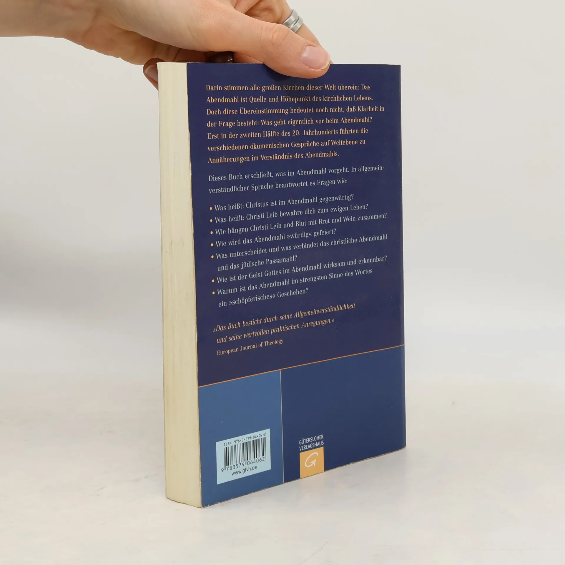 Das Abendmahl - kompakt und verständlich dargestellt Michael Welker erklärt das Abendmahl - kompakt, umfassend und allgemein verständlich. Facettenreich beantwortet er oft gestellte theologische und praktische Fragen zum Abendmahl. Was heißt: Christus ist im Abendmahl gegenwärtig? Was unterscheidet das christliche Abendmahl vom jüdischen Passamahl? Dürfen auch Kinder das Abendmahl mitfeiern? CCRRCCRRIn diese komplett überarbeitete und aktuelle Auflage hat er auch eine Auseinandersetzung mit der päpstlichen Enzyklika Ecclesia de Eucharistia vom April 2003 aufgenommen.CCRRCCRRDas Buch besticht durch seine Allgemeinverständlichkeit und seine wertvollen praktischen Anregungen.CCRRCCRREuropean Journal of Theology