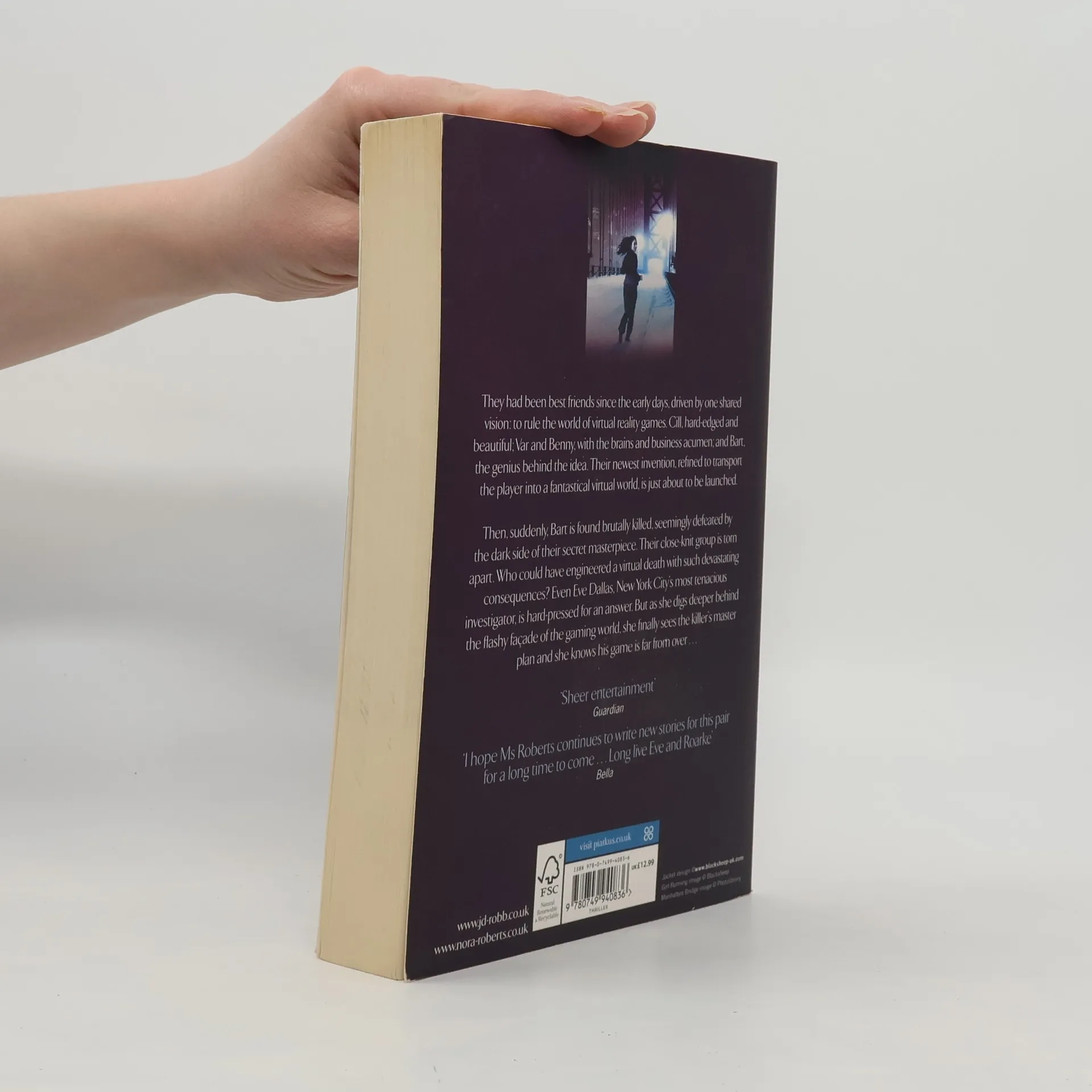 They were best friends, driven by one shared vision - to rule the world of virtual reality games. Cill, hard-edged and beautiful, Var and Benny, brains and business acumen, and Bart, the genius behind the idea. Their newest invention, developed to transport the player into a fantastical virtual world, is just about to be launched. Then, suddenly, Bart is found brutally killed, defeated by their own game. Their close-knit group is torn apart. Who could have engineered a virtual death with such devastating consequences? Even Eve Dallas, New York City's most cunning investigator, is hard-pressed for an answer. But as she digs deeper, peeling back layers of secrets, revenge and misplaced allegiances, she realises with growing dread the depth of the killer's master plan. And she knows his game is far from over...