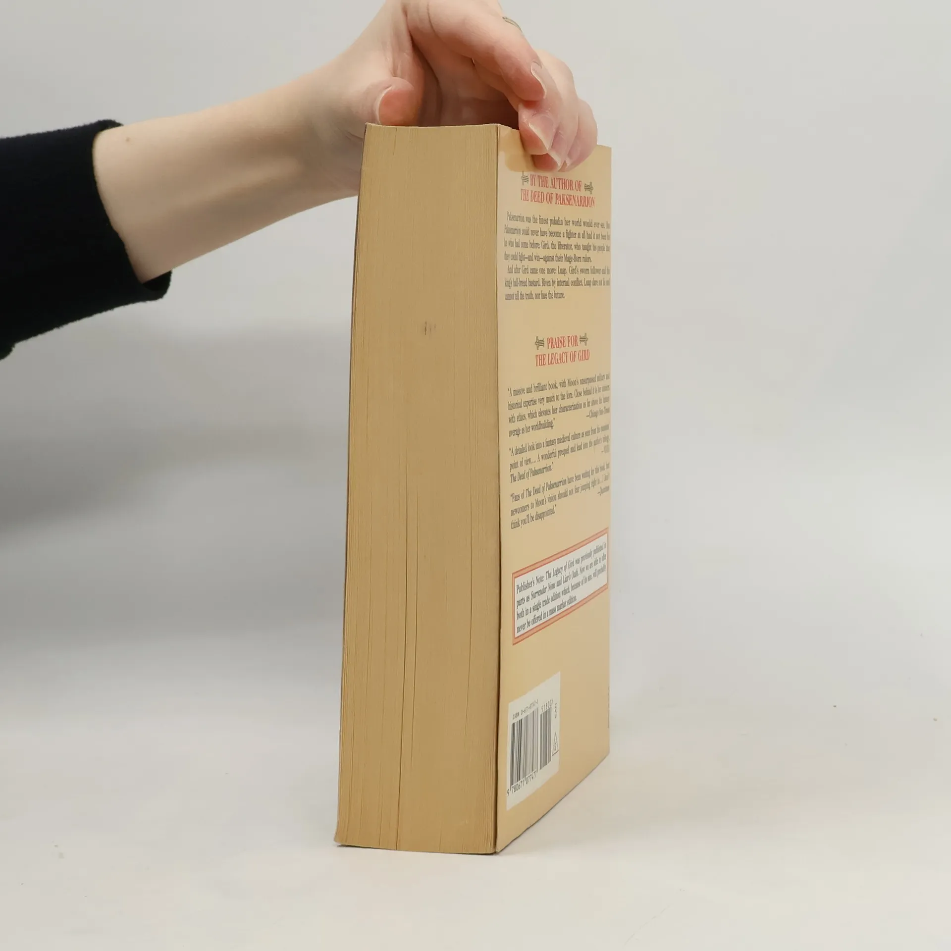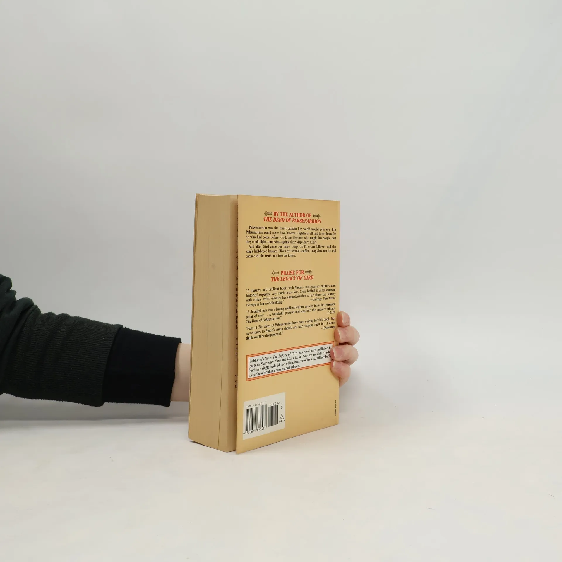 Moon's The Deed of Paksennarion has been a blockbuster success in Baen's one-volume trade paper edition--and now the trilogy has a companion. The Legacy of Gird tells of Gird, the liberator, who teaches his people that they can fight--and win--against their Mage-born rulers, and Luap, Gird's sworn follower, who dares not lie and cannot tell the truth--nor face the future.
