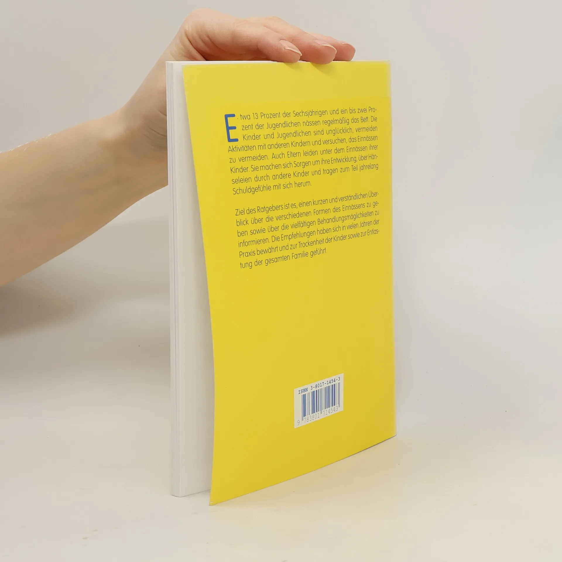 Etwa 13 Prozent der Sechsjährigen und ein bis zwei Prozent der Jugendlichen nässen regelmäßig das Bett. Die Kinder und Jugendlichen sind unglücklich, vermeiden Aktivitäten mit anderen Kindern und versuchen, das Einnässen zu vermeiden. Auch Eltern leiden unter dem Einnässen ihrer Kinder. Sie machen sich Sorgen um ihre Entwicklung, über Hän-seleien durch andere Kinder und tragen zum Teil jahrelang Schuldgefühle mit sich herum. Ziel des Ratgebers ist es, einen kurzen und verständlichen Über-blick über die verschiedenen Formen des Einnässens zu geben sowie über die vielfältigen Behandlungsmöglichkeiten zu informieren. Die Empfehlungen haben sich in vielen Jahren der Praxis bewährt und zur Trockenheit der Kinder sowie zur Entlastung der gesamten Familie geführt.