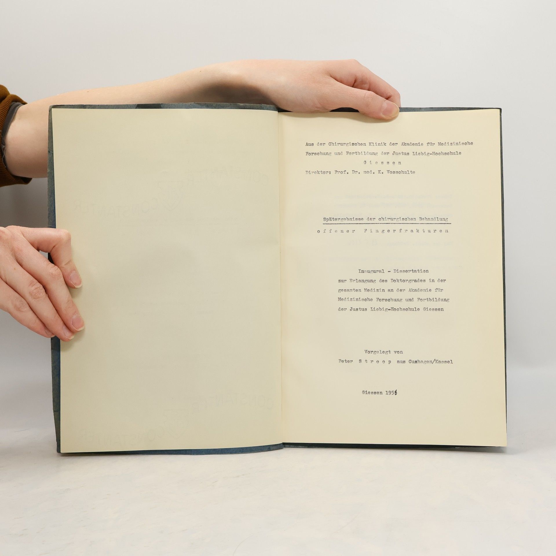 Hauptergebnisse der chirurgischen Behandlung offener Fingerfrakturen, Peter Stroop