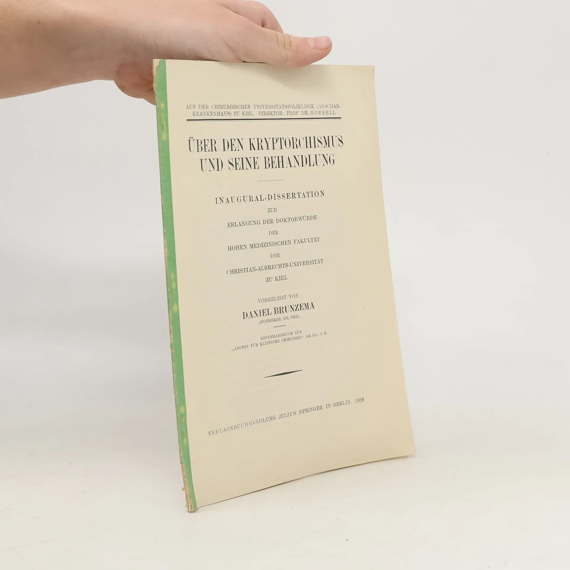 Über den Kryptorchismus und seine Behandlung, Daniel Brunzema
