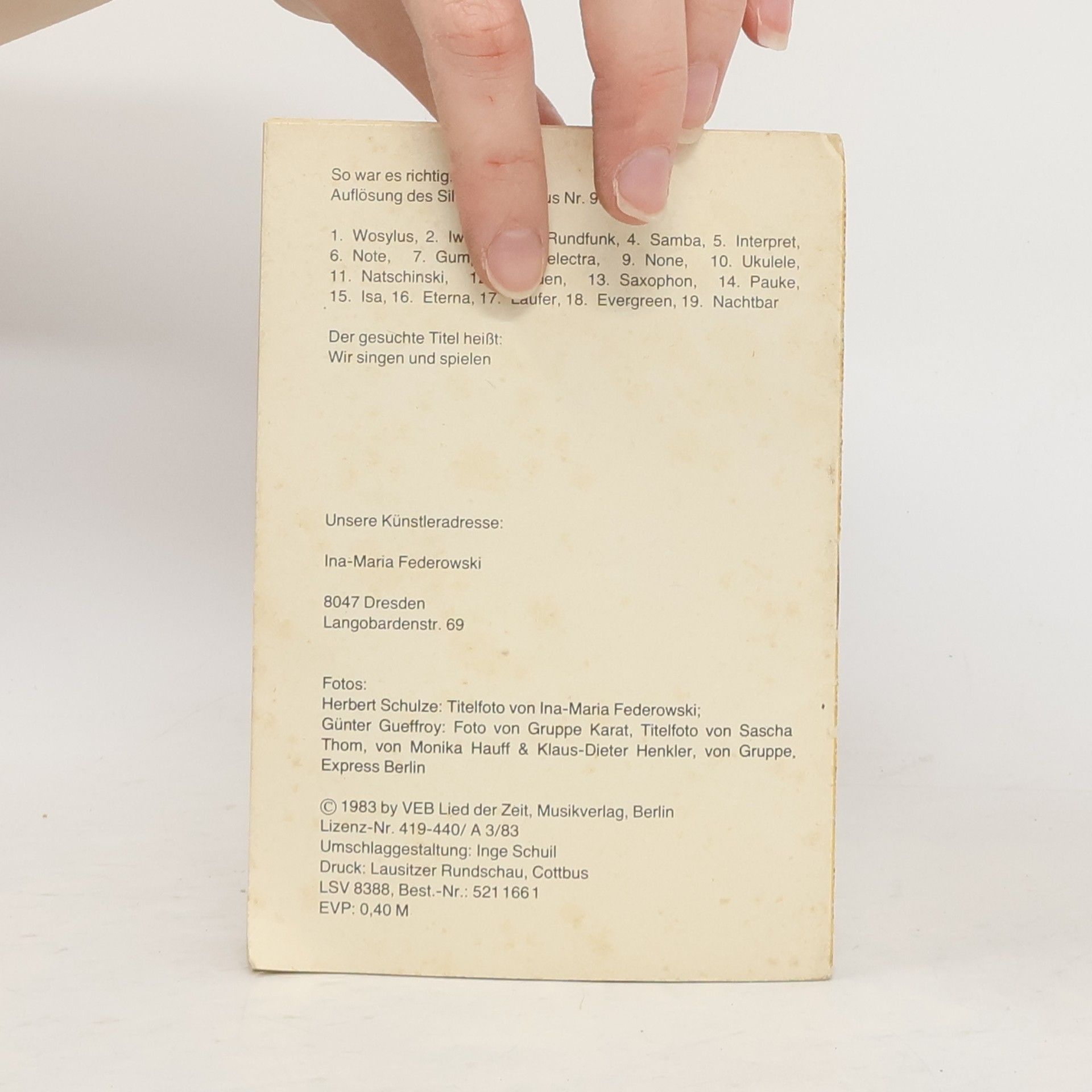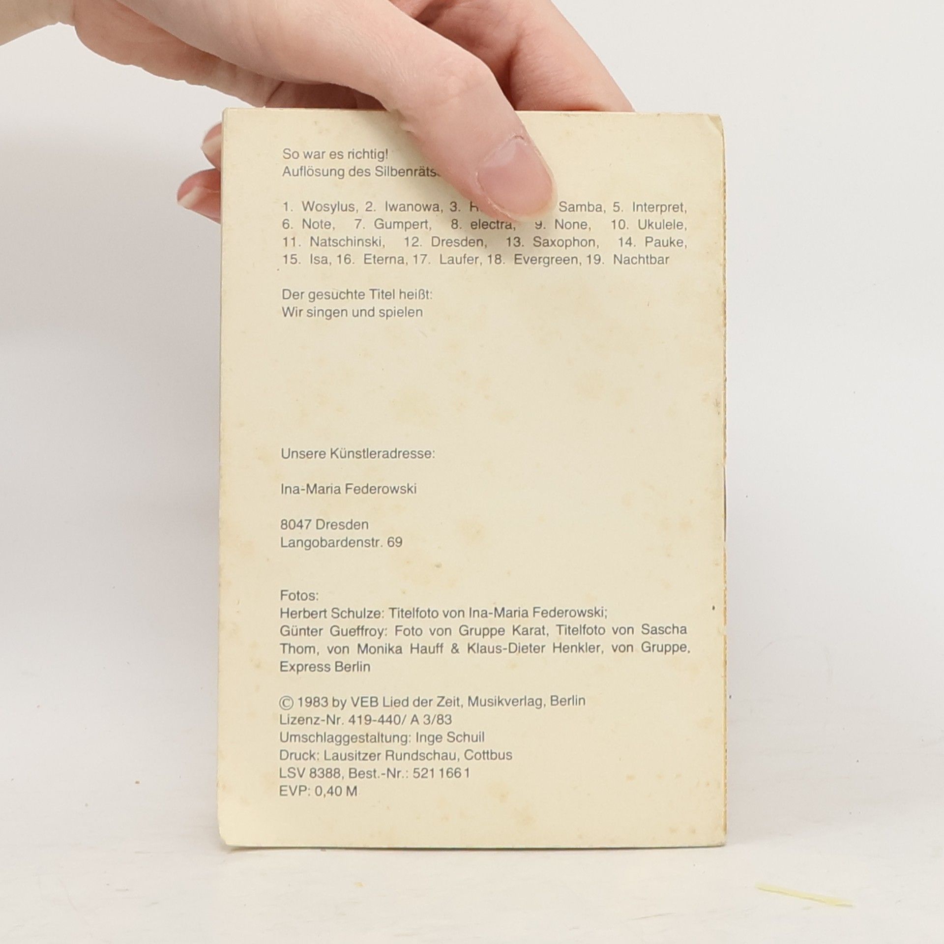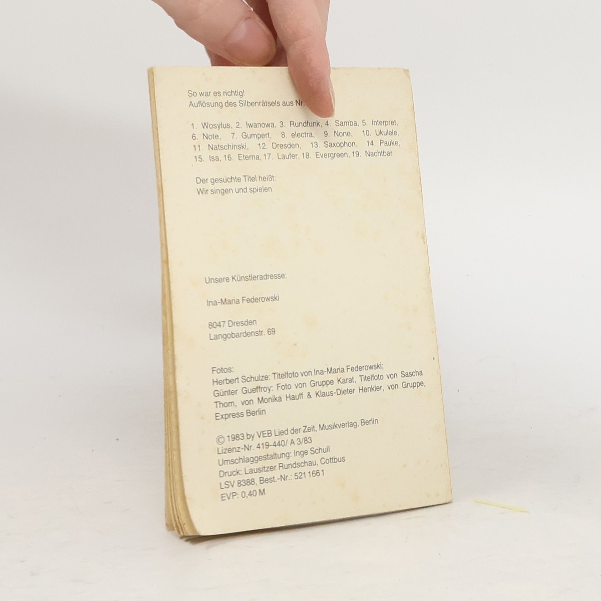 Wir senden dir das abgebildete Buch