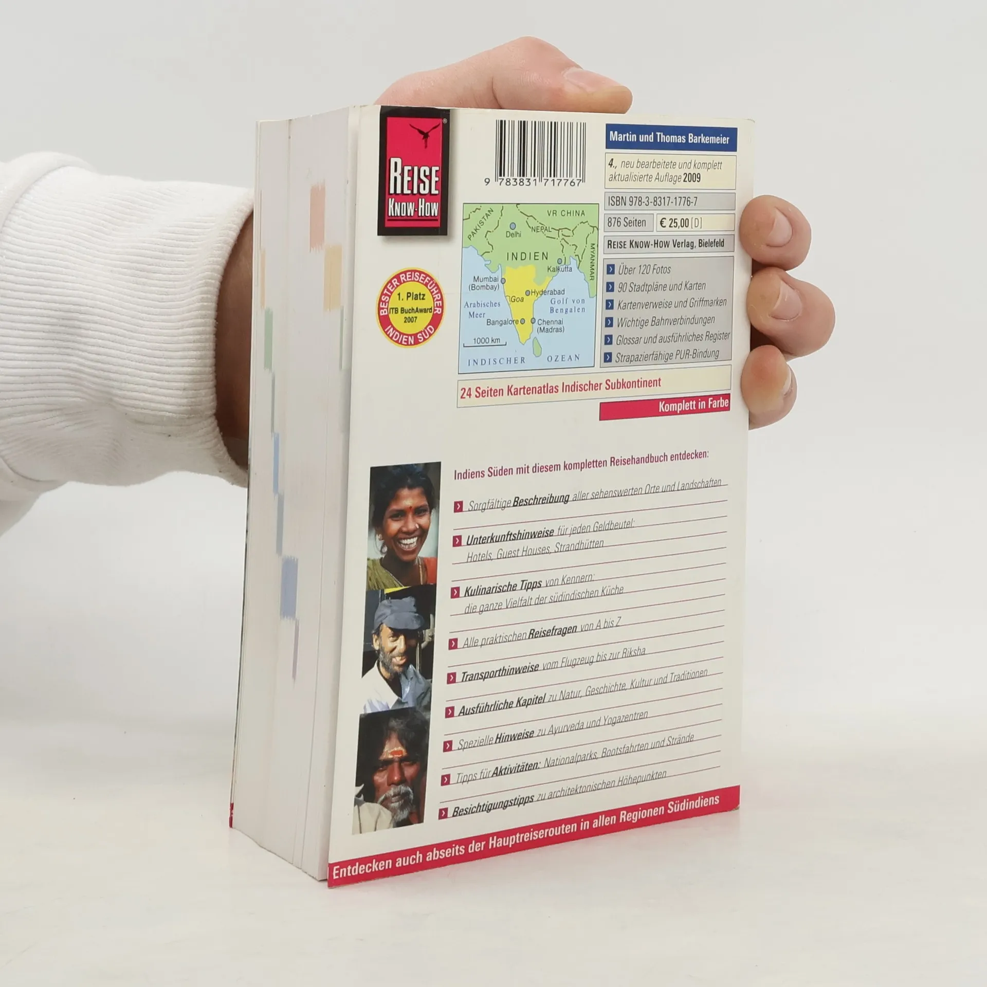 Sehr umfangreicher und detaillierter Reiseführer zu dieser landschaftlich und kulturell einzigartigen Region: Aktuelle Reisetipps von A bis Z: Unterkünfte, Essen und Trinken, Mobilität (inkl. Bahnverbindungen), Sehenswürdigkeiten, Nachtleben, Preise, Öffnungszeiten und viele weitere nützliche Informationen Detaillierte Kapitel zu den beiden Metropolen Mumbai (Bombay) und Chennai (Madras) Ausführliche Beschreibung der beiden Badeparadiese Goa und Kerala Spezielle Hinweise zu Ayurveda und Yogazentren Ausführliche Kapitel zu Kunst und Kultur wie Tempelarchitektur, Tanz, Musik, Kunsthandwerk Zahlreiche interessante Exkurse zu Themen wie „Die heilenden Kräfte der Natur Ayuverda“ bis „Aufstand der Unterdrückten Die Kastenlosen begehren auf“ Der Autor Thomas Barkemeier verbringt jedes Jahr mehrere Monate als Reiseleiter in Indien.