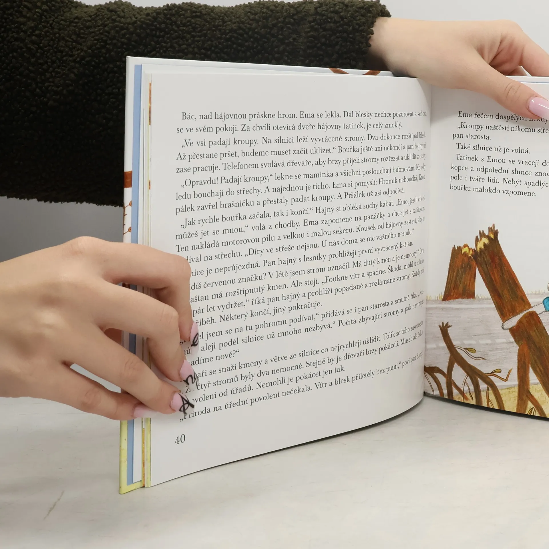 Další volné pokračování pohádkových příběhů kouzelných panáčků, kteří se starají o počasí. Vhodné pro děti od 5 let.V knížce se seznámíme s holčičkou Emou, která jde do první třídy a bydlí s maminkou a tatínkem v hájovně. Stejně jako její kamarád Tadeáš se setkává s kouzelnými panáčky, kteří každý den tvoří počasí. Ema se tak dozvídá co všechno mají skřítci na práci a prožívá s nimi podzim i začátek zimy.