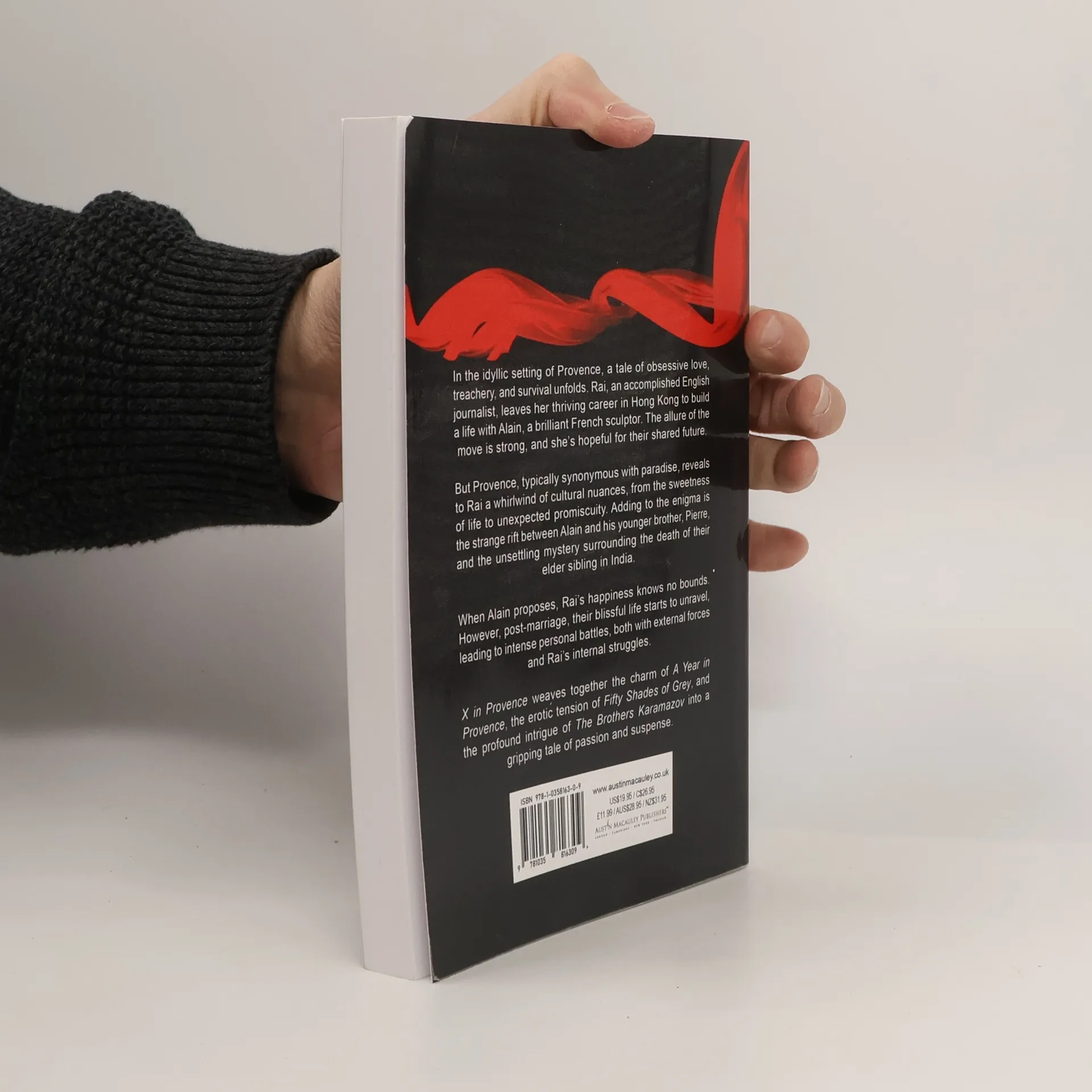 In the idyllic setting of Provence, a tale of obsessive love, treachery, and survival unfolds. Rai, an accomplished English journalist, leaves her thriving career in Hong Kong to build a life with Alain, a brilliant French sculptor. The allure of the move is strong, and she's hopeful for their shared future. But Provence, typically synonymous with paradise, reveals to Rai a whirlwind of cultural nuances, from the sweetness of life to unexpected promiscuity. Adding to the enigma is the strange rift between Alain and his younger brother, Pierre, and the unsettling mystery surrounding the death of their elder sibling in India. When Alain proposes, Rai's happiness knows no bounds. However, post-marriage, their blissful life starts to unravel, leading to intense personal battles, both with external forces and Rai's internal struggles. X in Provence weaves together the charm of A Year in Provence, the erotic tension of Fifty Shades of Grey, and the profound intrigue of The Brothers Karamazov into a gripping tale of passion and suspense.
