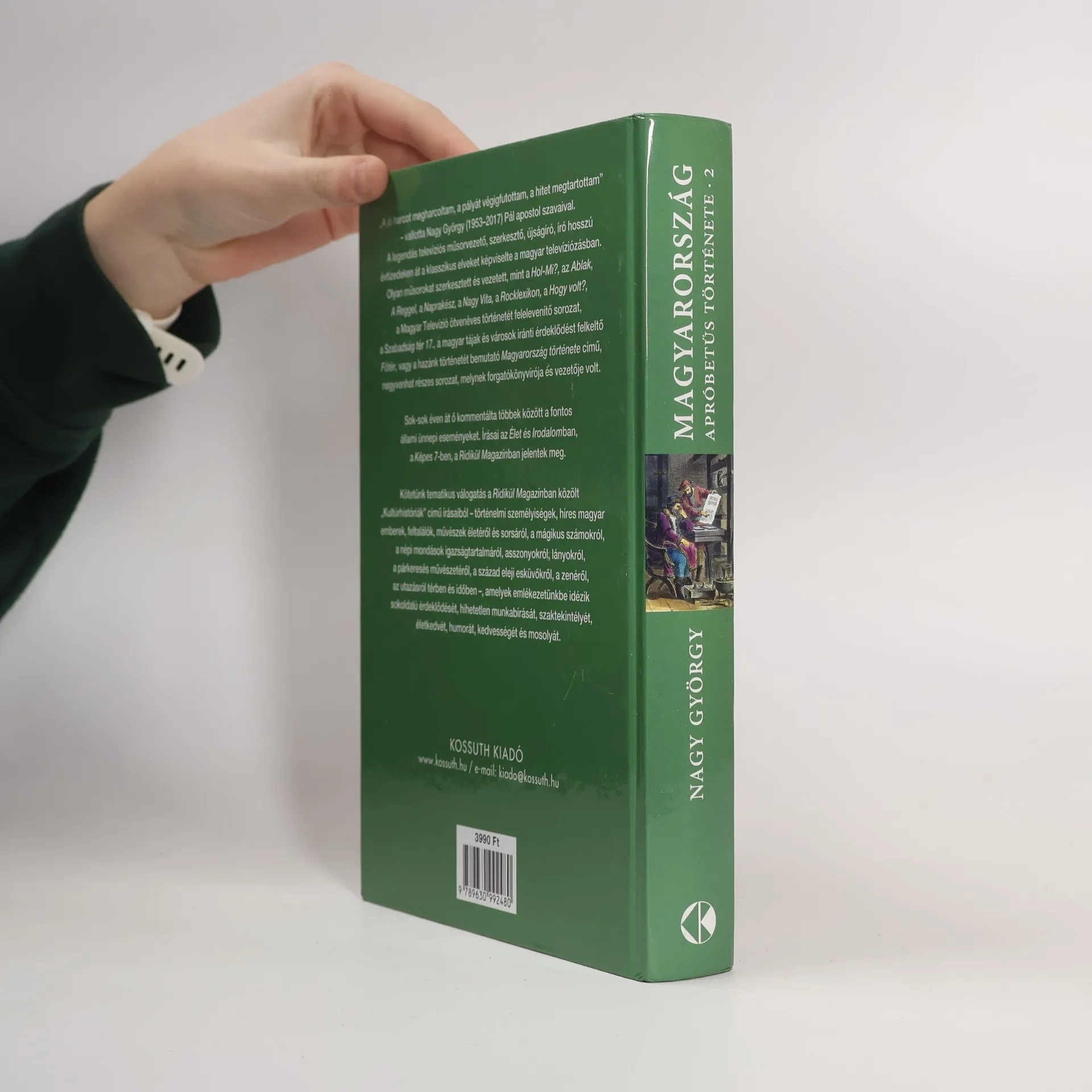 Negyvenhat részt ért meg a Magyar Televízióban a Magyarország története című sorozat, amelyet Nagy György szerkesztett és vezetett. A sorozat célja a korszerű történettudományi ismeretek izgalmas bemutatása volt. E szellemben készült a Magyarország apróbetűs története című kötet, amely háromszáz rövid egységben mesél el különleges történeteket a magyarok másfél évezredes múltjáról, a csodaszarvas mondájától a 2006-os "Tv-ostromig". A 89. Ünnepi Könyvhétre megjelenő kötet új kultúrtörténeti érdekességekkel foglalkozik, olyan témákkal, amelyek a tankönyvekben gyakran csak lábjegyzetben szerepelnek. Székely Katalin által összeállított kiadvány nem közvetlenül a televíziós sorozathoz kapcsolódik, hanem a Ridikül Magazinban megjelent írások válogatása, amely nemcsak magyar, hanem világtörténeti témákat is érint. Az első magyar királykoronázástól az utolsó budai pasáig, az 1838-as pesti árvíztől a kiegyezésig, Budapest 1873-as létrejöttétől IV. Károly koronázásáig, a női egyenjogúsági mozgalom megjelenésétől Szent-Györgyi Albert Nobel-díjáig, számos érdekességről olvashatunk.