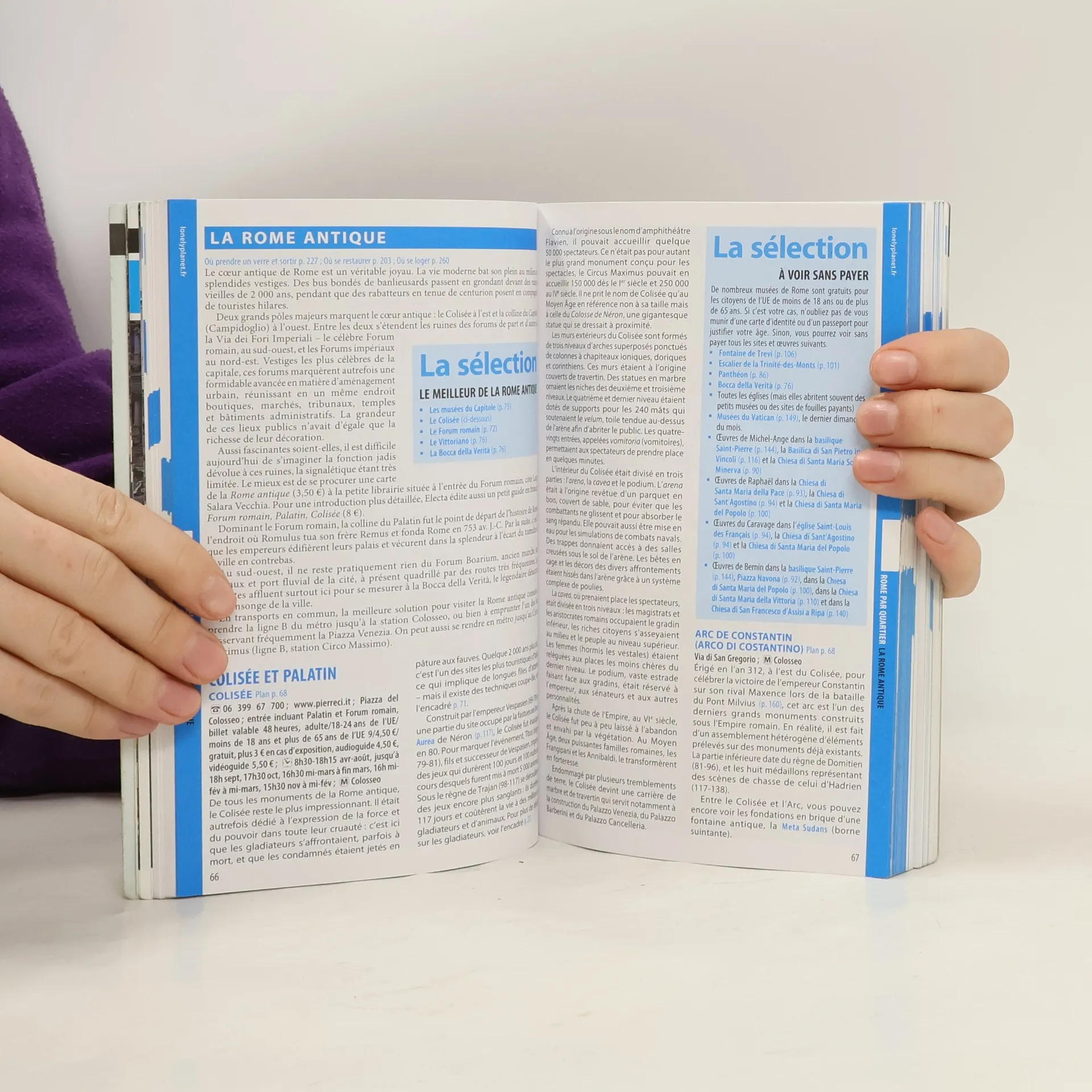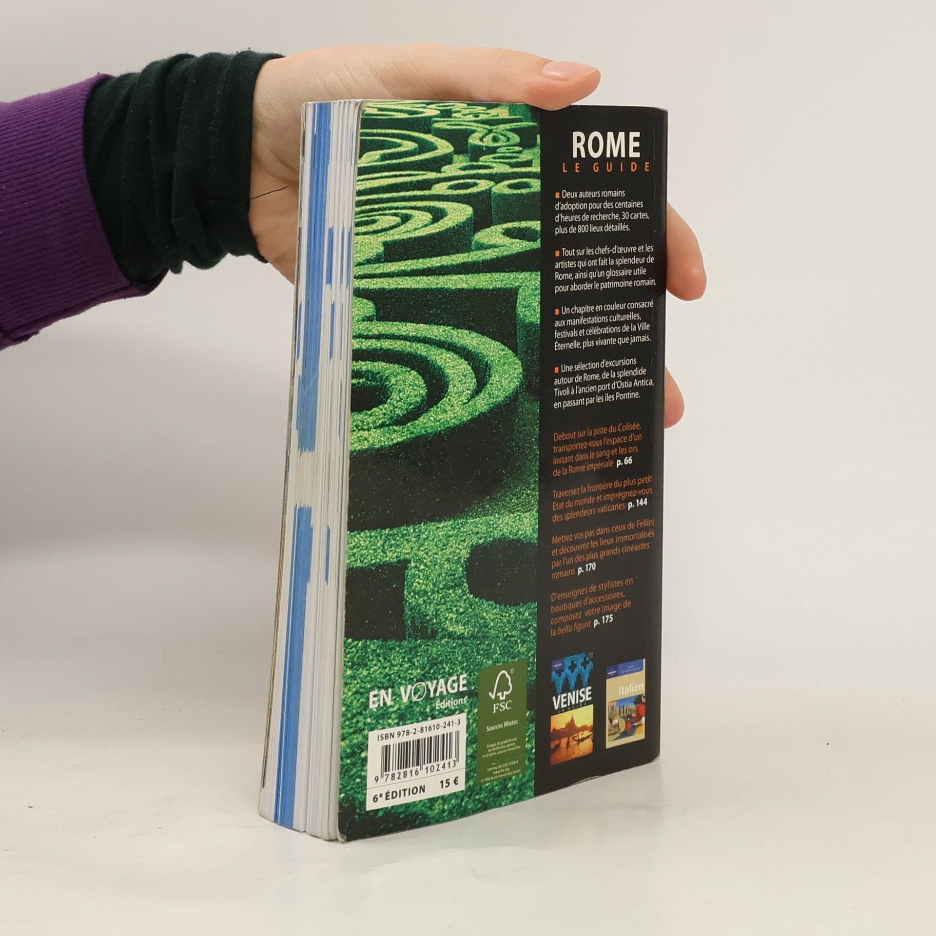 Deux auteurs romains d'adoption pour des centaines d'heures de recherche, 30 cartes,plus de 800 lieux détaillés.Tout sur les chefs-d'oeuvre et les artistes qui ont fait la splendeur de Rome, ainsi qu'un glossaire utile pour aborder le patrimoine romain.Un chapitre en couleur consacré aux manifestations culturelles, festivals et célébrations de la Ville Éternelle, plus vivante que jamais.Une sélection d'excursions autour de Rome, de la splendide Tivoli à l'ancien port d'Ostia Antica, en passant par les îles Pontine.Debout sur la piste du Colisée, transportez-vous l'espace d'un instant dans le sang et les orsde la Rome impériale p. 66Traversez la frontière du plus petit État du monde et imprégnez-vous des splendeurs vaticanes p. 144Mettez vos pas dans ceux de Fellini et découvrez les lieux immortalisés par l'un des plus grands cinéastes romains p. 170D'enseignes de stylistes en boutiques d'accessoires, composez votre image de la bella figura p. 175