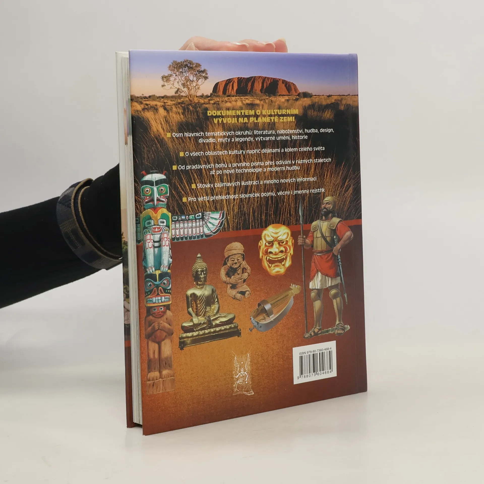 Ilustrovaná encyklopedie představuje jednotlivé oblasti lidské kultury - základní pojmy, osobnosti, dějiny i současnost. V osmi kapitolách (věnovaných např. písemnictví, náboženství, hudbě, designu, dramatickému či výtvarnému umění) stručně seznamuje s kulturou a kulturními dějinami v nejširším slova smyslu. Vedle základních pojmů, žánrů či význačných představitelů jednotlivých kulturních oblastí připomíná vytváření kulturních tradic a hodnot a jejich předávání z pokolení na pokolení. Neomezuje se pouze na evropskou kulturu, zabývá se i odkazem mimoevropských civilizací. Stručný text doprovází množství ilustrací a barevných fotografií. Rozsahem informací i formou vhodné zejména pro mládež. Doplněno slovníčkem pojmů a rejstříkem.