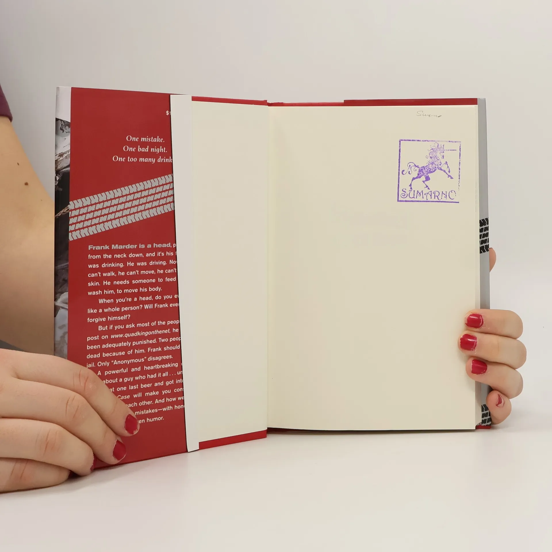ONE MISTAKE. ONE BAD NIGHT. ONE TOO MANY DRINKS. A powerful and heartbreaking debut novel about a guy who had it all...until he drank that fifth beer and got into the car. Frank Marder is a head, paralyzed from the neck down, and it's his fault. He was drinking. He was driving. Now Frank can't walk, he can't move, he can't feel his skin. He needs someone to feed him, to wash him, to move his body. But if you ask most of the people who are posting on www.quadkingonthenet, he hasn't been adequately punished. Two people are dead because of him. Frank should go to jail. Only "Annonymous" disagrees.