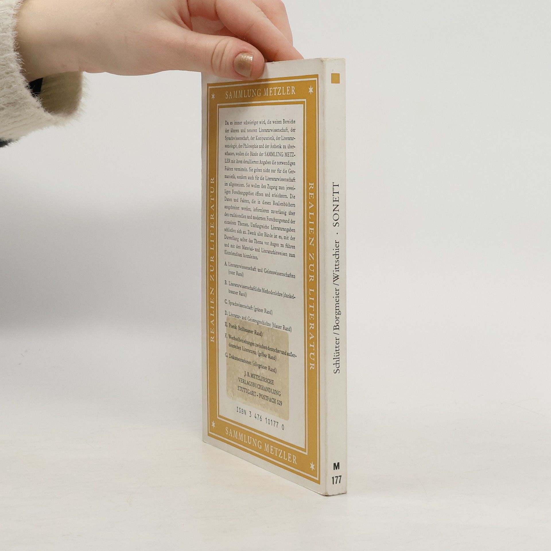 Sammlung Metzler - 177: Sonett, Hans-Jürgen Schlütter, Raimund Borgmeier, Heinz Willi Wittschier