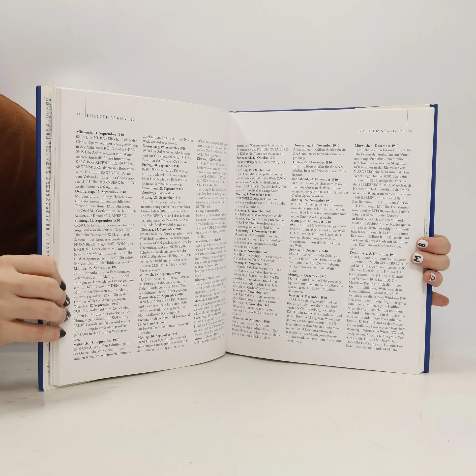 Das Buch stellt eine Dokumentation der Kreuzer NÜRNBERG dar. Es werden die deutschen Kreuzer NÜRNBERG I, II und III sowie der sowjetische Kreuzer ADMIRAL MAKAROW (ex NÜRNBERG) behandelt. Zum Inhalt gehören die Bug- und Turmwappen, die Schiffs- und Personaldaten, die technischen Daten sowie das Aussehen zu verschiedenen Zeiten mit neuen Skizzen der Tarnanstriche. Insgesamt sind 57 Seiten Skizzen und 145 Fotos (auch von Modellen) enthalten. Es wird über die Ausrüstungen von 1935/36 und 1944/45 berichtet. Alle Veränderungen zwischen 1935 und 1945 werden gesondert aufgeführt. Gezeigt werden auch Abteilungs- und Spantenpläne von 1939 und Deckspläne von 1942. Weiter wird berichtet über die technischen Daten der Bewaffnung, der Funkmeß-Ortungs- und -Beobachtungsgeräte, der Beiboote und der Bordflugzeuge. Eine Liste der Admirale, des Schiffsstabes und der Offiziere des Kreuzers NÜRNBERG III von 1935 bis 1945 ist beigefügt. Ferner sind die Lebensläufe der oben erwähnten Kreuzer mit Hafenskizzen aufgeführt. Der größte Teil der Fotos ist in einem Kapitel „Bilddokumentation" zusammengefaßt.
