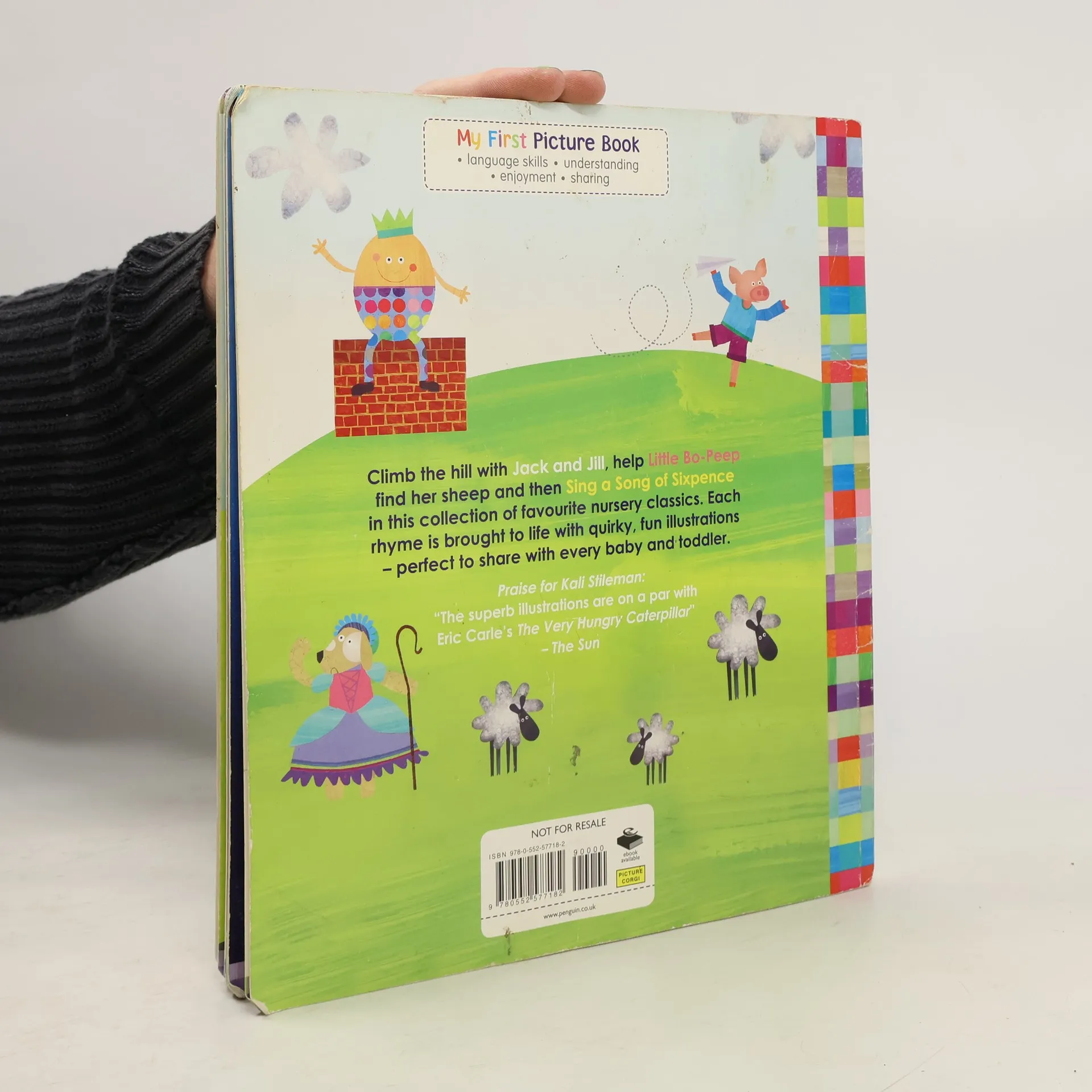 <b>Part of the My First Picture Book series: printed on toddler-tough card with rounded corners. Perfect for every toddler to help build language, understanding and enjoyment.</b> From the creator of <b>Big Book of My World</b> comes this collection of favourite nursery rhymes. Kali Stileman brings the action rhymes, songs and lullabies to life with her characteristically quirky, fun illustrations. Kali's first book, <b>Peely Wally</b>, was selected to be part of the Booktrust's Books for Babies scheme. 150,000 copies are being distributed to mothers and babies throughout the UK in 2012.