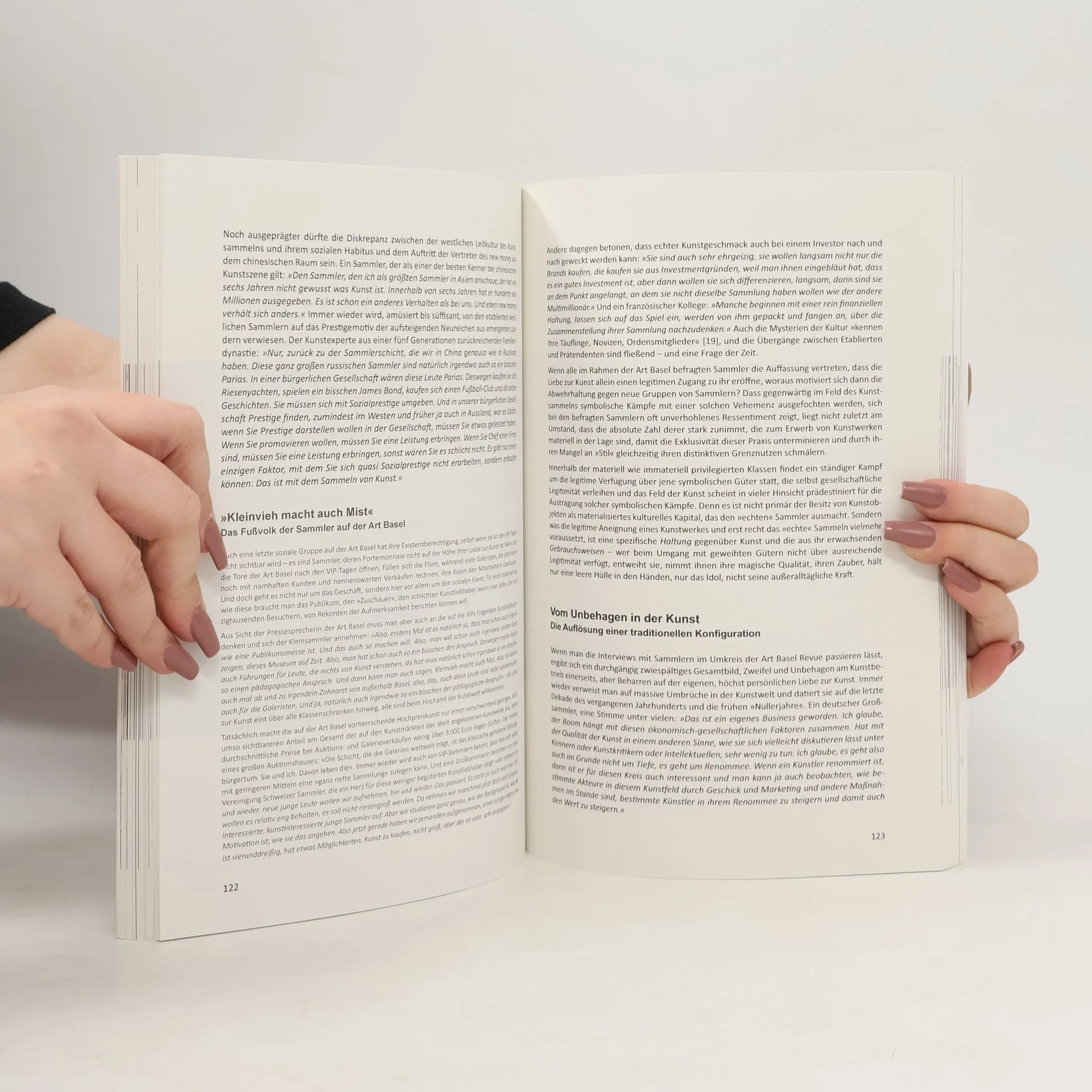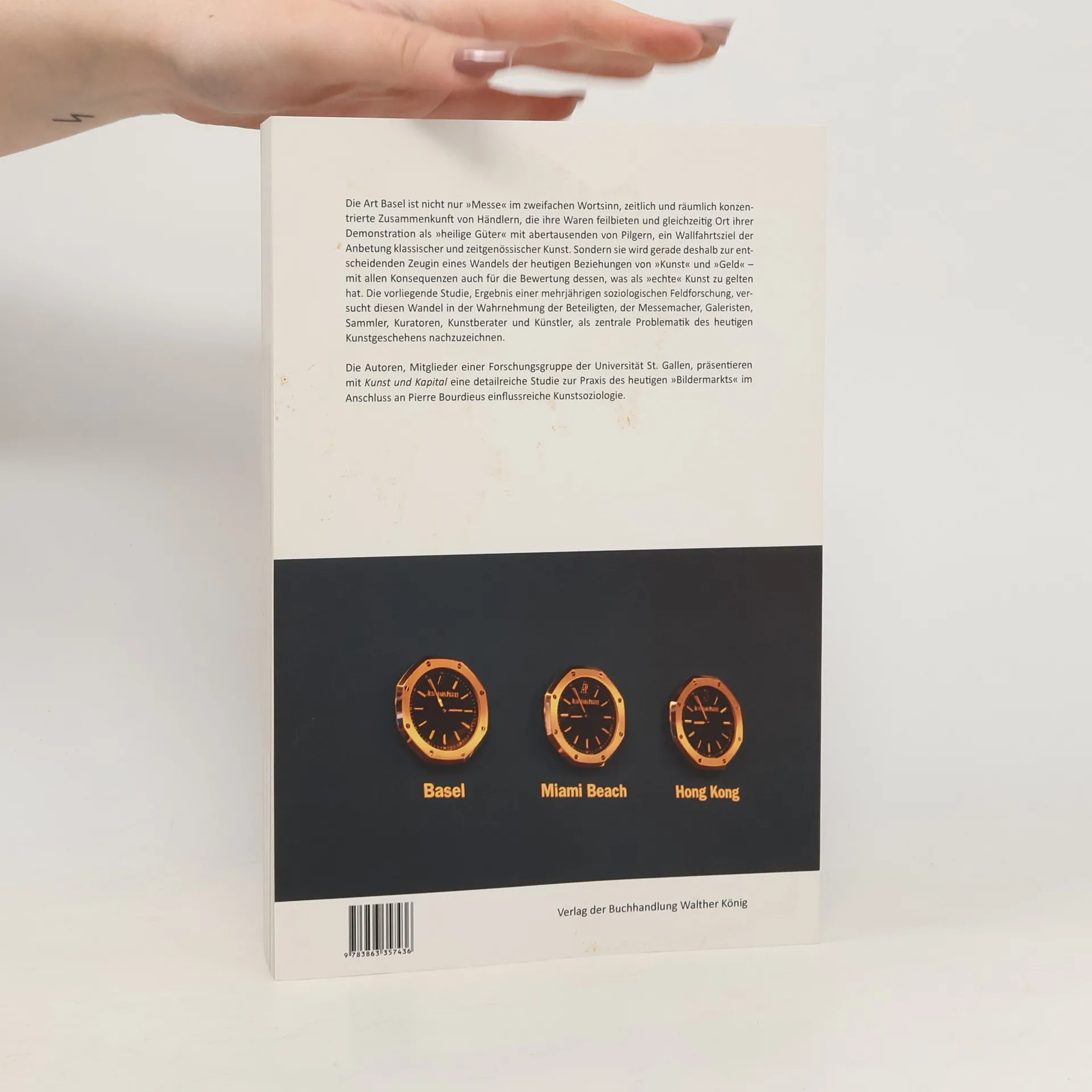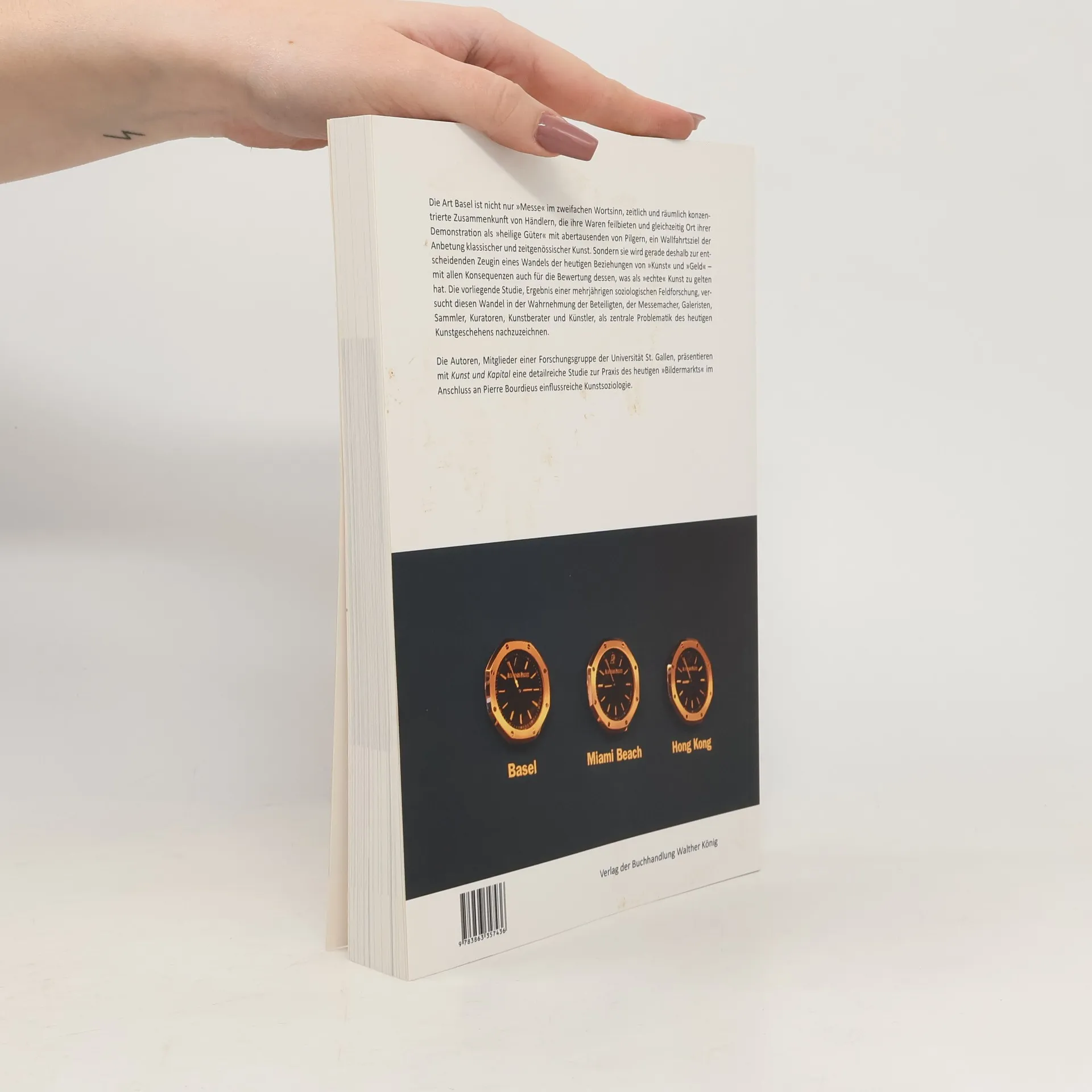Die Art Basel ist nicht nur 'Messe' im zweifachen Wortsinn, zeitlich und räumlich konzentrierte Zusammenkunft von Händlern, die ihre Waren feilbieten und gleichzeitig Ort ihrer Demonstration als 'heilige‹ Güter' mit abertausenden von Pilgern, ein Wallfahrtsziel der Anbetung klassischer und zeitgenössischer Kunst. Sondern sie wird gerade deshalb zur entscheidenden Zeugin eines Wandels der heutigen Beziehungen von 'Kunst' und 'Geld' – mit allen Konsequenzen auch für die Bewertung dessen, was als 'echte' Kunst zu gelten hat. Die vorliegende Studie, Ergebnis einer mehrjährigen 'ethnographischen' Feldforschung, versucht diesen Wandel in der Wahrnehmung der Beteiligten – Messemacher, Galeristen, Sammler, Kuratoren, Kunstberater und Künstler – detailliert nachzuzeichnen.
