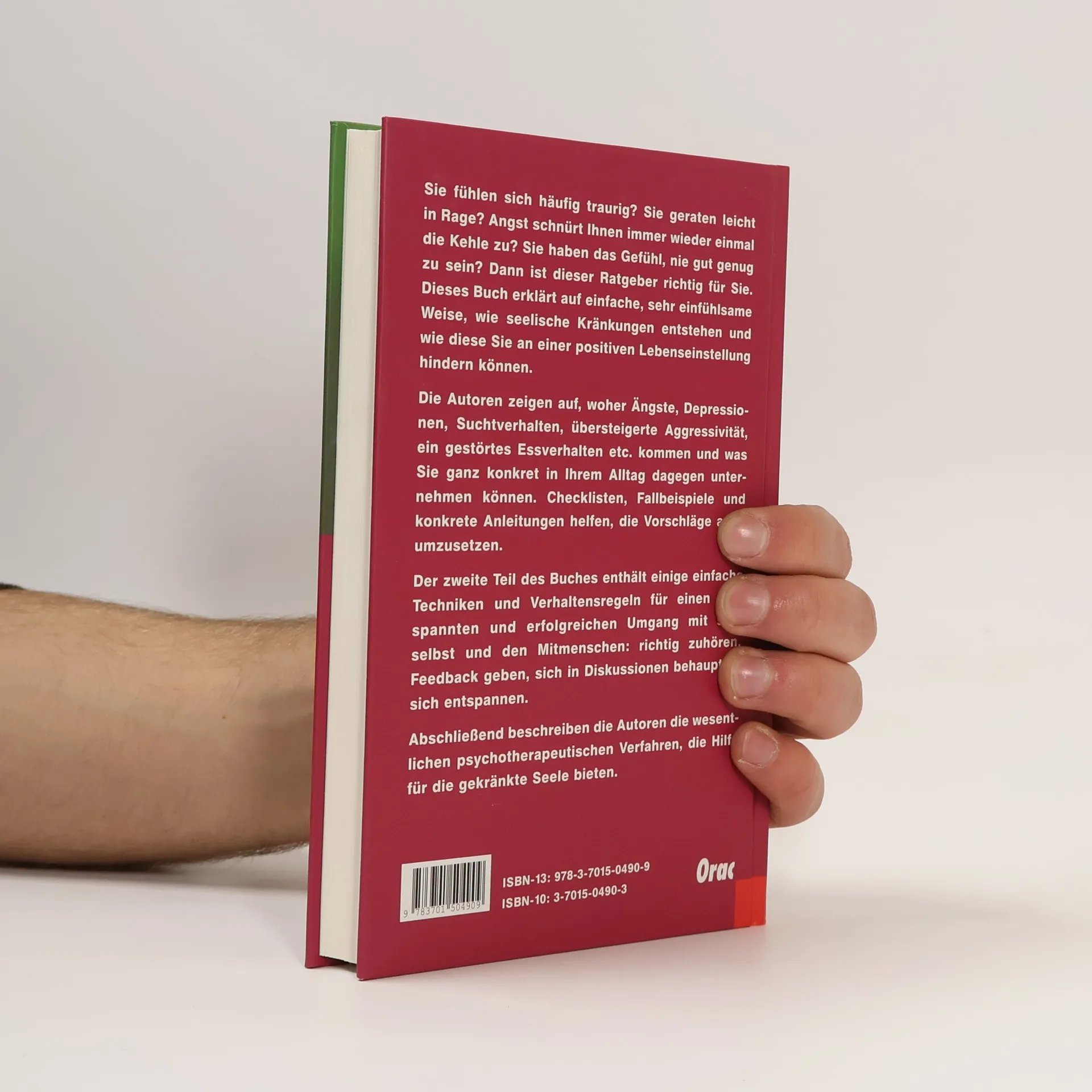 Dieses Buch erklärt auf einfache, sehr einfühlsame Weise, wie seelische Probleme entstehen und was dabei helfen kann, sie zu lösen. Hilfe für die gekränkte Seele, anschaulich, konkret und praxisnah! Die Autoren beschreiben, woher Ängste, Depressionen, Suchtverhalten, übersteigerte Aggressivität und andere seelische Kränkungen kommen, wie sie sich äußern und was die Betroffenen ganz konkret in ihrem Alltag dagegen unternehmen können. Checklisten, Fallbeispiele und konkrete Anleitungen helfen, die Vorschläge auch umzusetzen. Der zweite Teil des Buches enthält einige einfache Techniken und Verhaltensregeln für einen entspannten und erfolgreichen Umgang mit sich selbst und den Mitmenschen: richtig zuhören, Feedback geben, sich in Diskussionen behaupten, sich entspannen. Das letzte Kapitel des Buches schließlich beschreibt die wesentlichen psychotherapeutischen Verfahren, die Hilfe für die gekränkte Seele bieten.