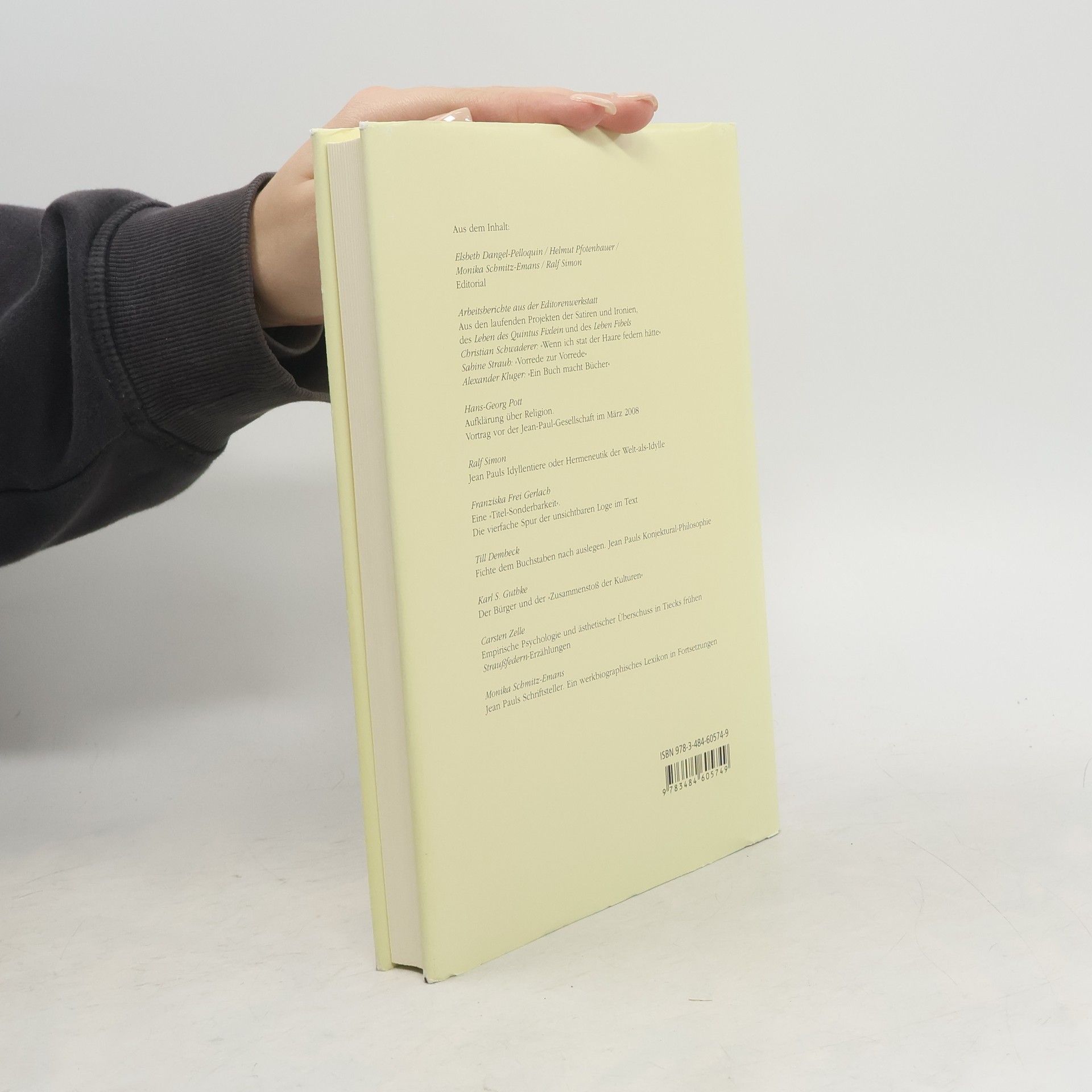 The Yearbook, published since 2006 by Max Niemeyer Publishers (previously Metzler), presents articles on Jean Paul and his work, together with contributions dealing with the literature, arts, culture and aesthetics of his age. There are regular extracts from previously unpublished posthumous works and progress reports from the work on the critical historical edition.