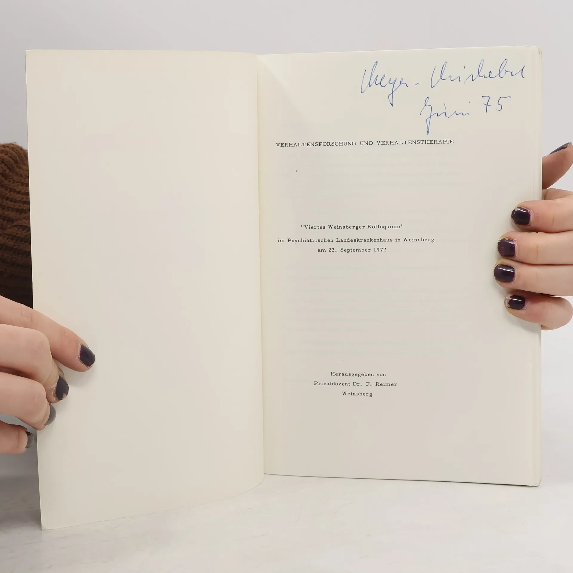 4. Weinsberger Kolloquium im Psychiatrischen Landeskrankenhaus Weinsberg am 23. September 1972