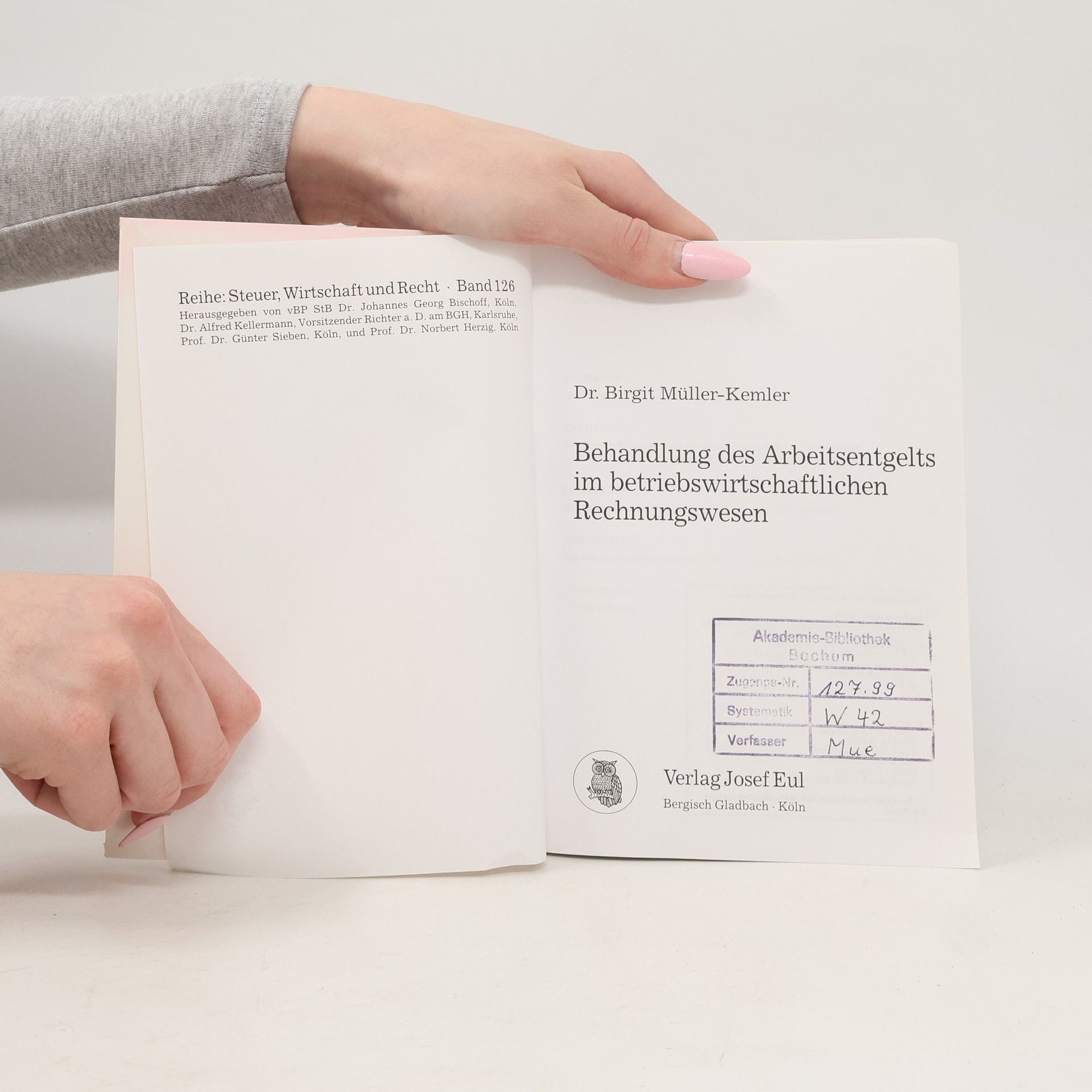 Steuer, Wirtschaft und Recht - 126: Behandlung des Arbeitsentgelts im betriebswirtschaftlichen Rechnungswesen, Birgit Müller-Kemler, Johannes Georg Bischoff, Alfred Kellermann, Günter Sieben, Norbert Herzig