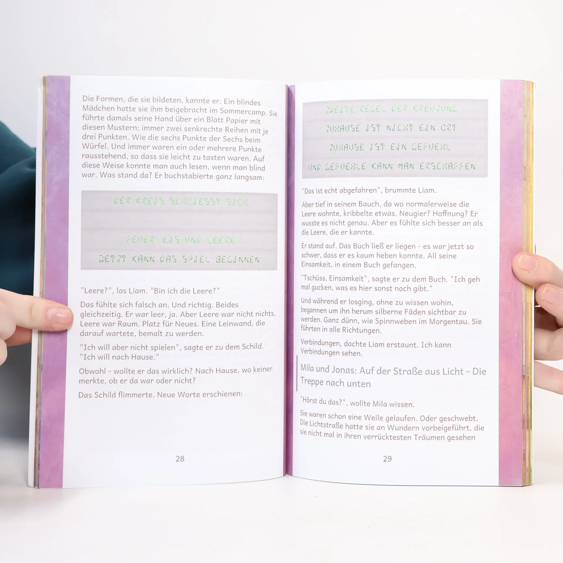 Eine magische Geschichte über Mut, Freundschaft und die Kraft, anders zu sein. Mila hasst Dienstage, an denen sie zwischen Mamas und Papas Welt hin- und hergeschoben wird, und ihre Wut brodelt wie ein Vulkan. Jonas versteckt sich, wenn seine Eltern beim Anwalt über sein Leben entscheiden, während die Angst ihn lähmt. Liam fühlt sich in der Bibliothek durchsichtig, seit sein bester Freund weggezogen ist und er allein ist. Drei Kinder, drei zerbrochene Familien, die an einem geheimnisvollen Ort zwischen allen Welten aufeinandertreffen. Dort, wo Straßen aus Licht in den Himmel führen und vergessene Träume neu erblühen, entdecken sie, dass ihre vermeintlichen Schwächen außergewöhnliche Kräfte sind. Milas Wut verwandelt sich in kreatives Feuer, Jonas' Angst wird zu klaren Eiskristallen, und Liams Einsamkeit wird zur Gabe, andere zu verbinden. Gemeinsam befreien sie eine Stadt vergessener Kinder, stellen sich einem gefährlichen Sammler entgegen und lernen, dass echte Stärke nicht in der Perfektion liegt, sondern im Teilen ihrer Kräfte. Eine berührende Erzählung über Scheidungskinder, die ihren Platz finden, über Freundschaft, die stärker ist als Angst, und über Familien, die heilen können, wenn Kinder ihnen den Weg zeigen. Für Kinder ab 8 Jahren und alle Erwachsenen, die sich an das Gefühl erinnern möchten, ein Kind zu sein.