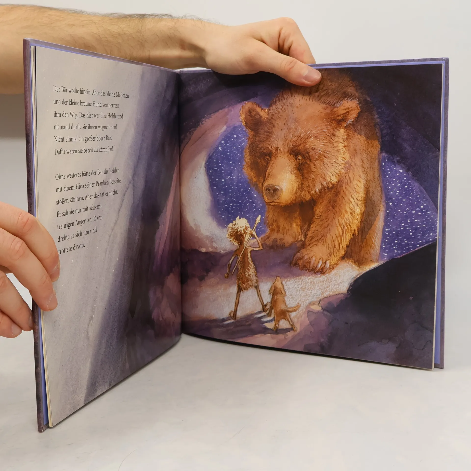In der kuscheligen Bärenhöhle - Ein Mädchen schließt Freundschaft mit einer Bärenfamilie Beeren sammeln, Feuer machen, Forellen braten – um in der Wildnis leben zu können, braucht man Geschick und ganz viel Mut! So wie das Mädchen, das mit einem kleinen Hund in einer Höhle wohnt. Als es an einem verschneiten Wintertag Bärenspuren davor entdeckt, gilt es das Zuhause zu verteidigen. Was passiert, wenn der Bär zurückkommt? Wird er das Mädchen und den Hund vertreiben? Oder haben am Ende alle Platz in der Höhle?