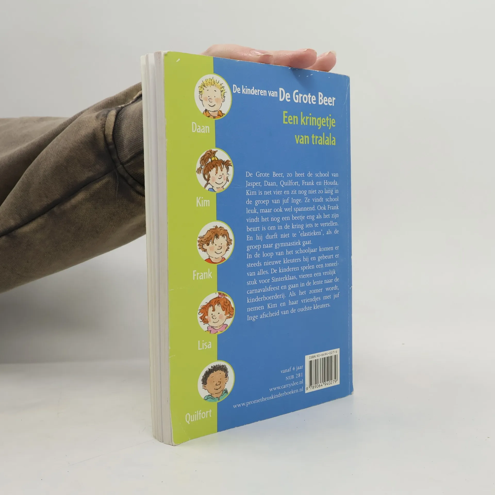 De grote beer, zo heet de school van Jasper, Daan, Quilfort, Frank en Houda. Kim is net vier en zit nog niet zo lang in de groep van juf Inge. Ze vindt school leuk, maar ook wel spannend. Ook Frank vindt het nog een beetje eng als het zijn beurt is om in de kring iets te vertellen. En hij durft niet te 'elastieken', als de groep naar gymanstiek gaat.