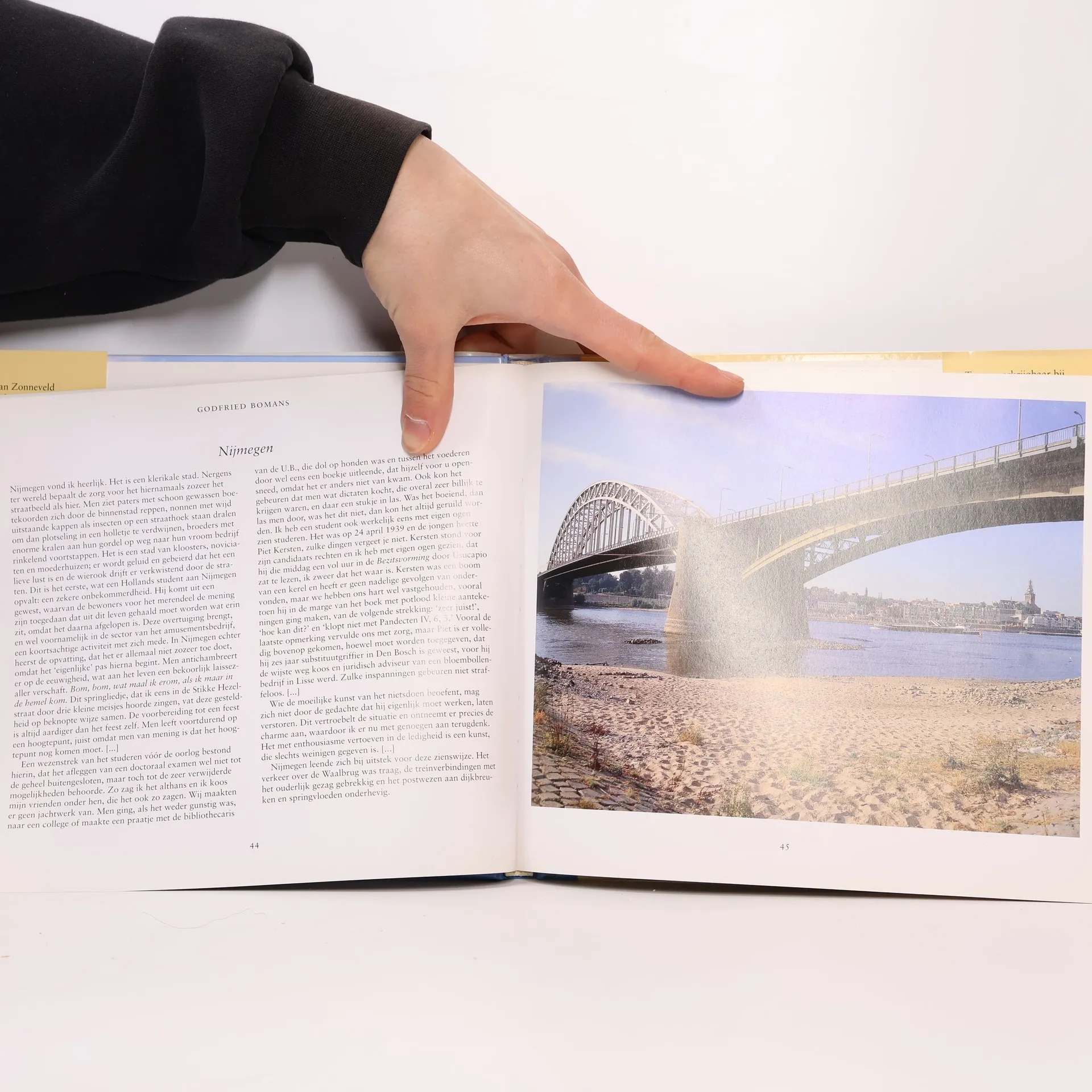 Het echtpaar Gwynne en Peter van Zonneveld stelde deze bloemlezing samen met prozafragmenten en gedichten van Nederlandse schrijvers over de steden van Nederland. Met onder meer werk van A. Marja (Groningen), Simon Vestdijk (Harlingen), Willem Wilmink (Enschede), Lennaert Nijgh (Almere), Gerrit Achterberg (Amersfoort), Herman de Man (Oudewater) , Simon Carmiggelt en J.C.Bloem (Amsterdam), Constantijn Huygens (Hoorn), Nicolaas Beets en Harry Mulisch (Leiden), Hella S. Haasse en Gerrit Achterberg (Den Haag), J.A. Deelder (Rotterdam), Bertus Aafjes (Den Bosch) en Guillaume van der Graft (Maastricht). Bij elk opgenomen fragment een paginagrote kleurenfoto. Een mooi uitgegeven bundel (22,5 x 26 cm.) waarin de lezer op een literaire tocht door de steden van Nederland wordt meegenomen. Gwynne en Peter van Zonneveld stelden eerder de bloemlezing 'Een wonderlijk buitenlandse schrijvers over Nederland = A curious landscape : foreign writers on the Netherlands'* samen, met korte prozafragmenten en gedichten van buitenlandse auteurs over Nederland.